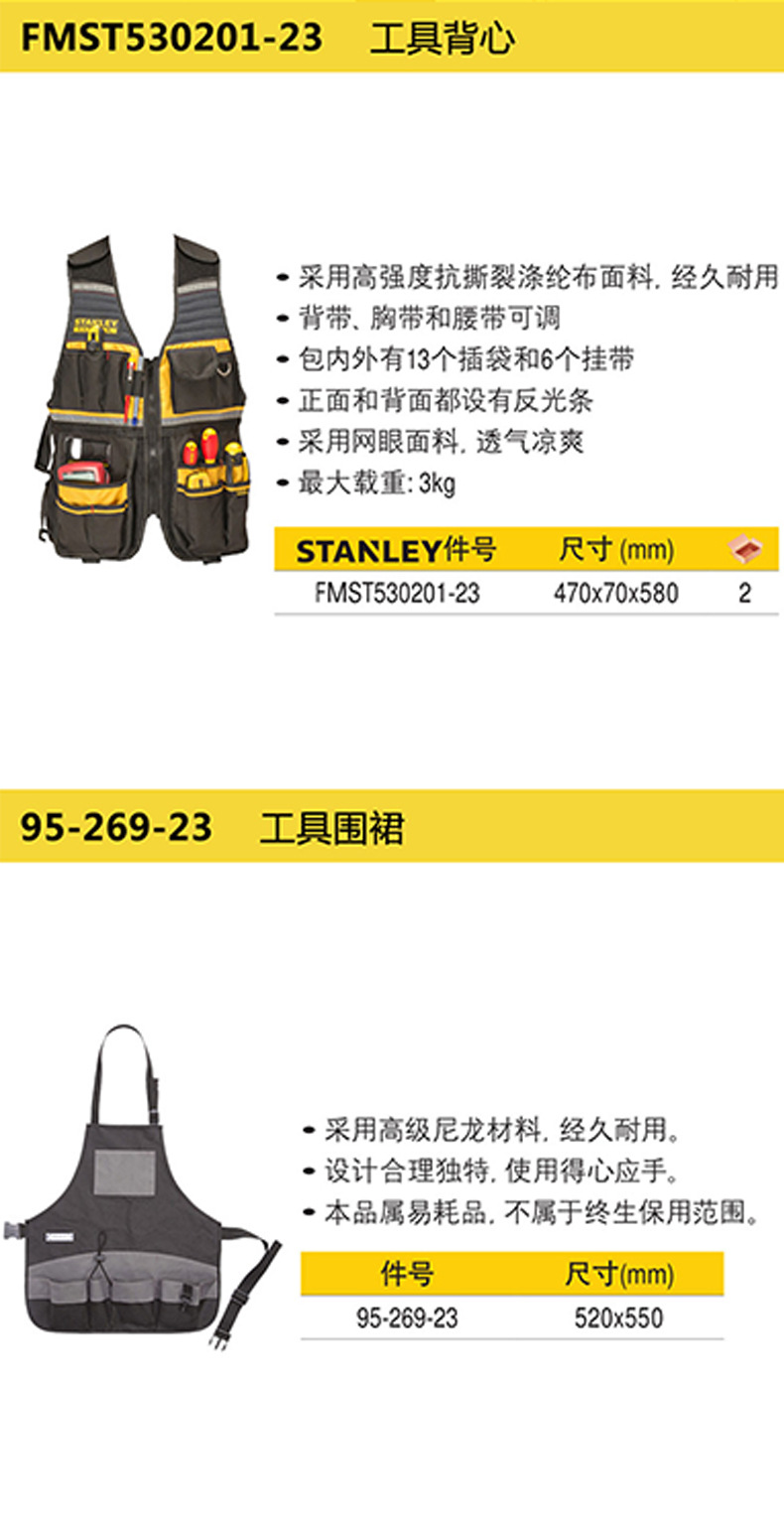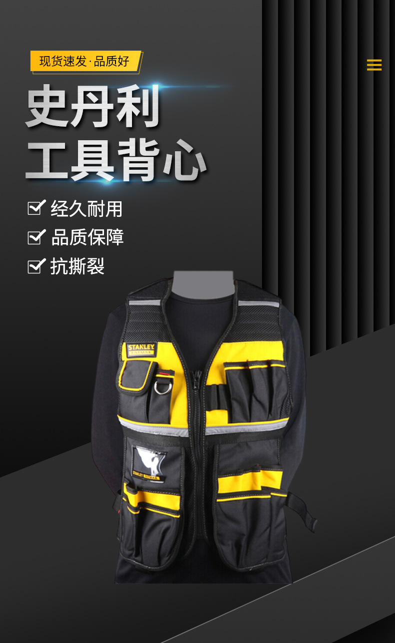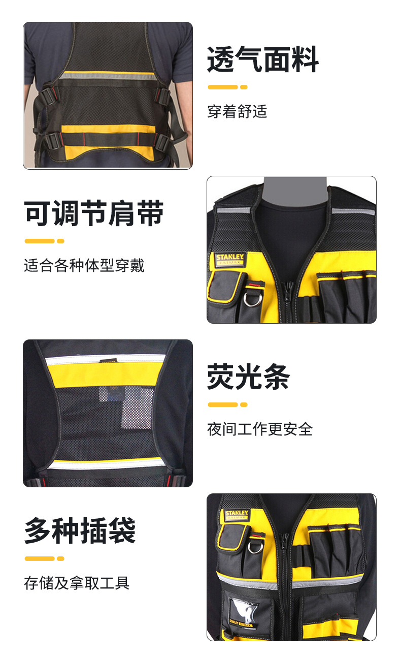 Herramientas Stanley chaleco de trabajo de gran capacidad chaleco reflectante chaleco de construcción de seguridad ropa de trabajo resistente al desgaste
