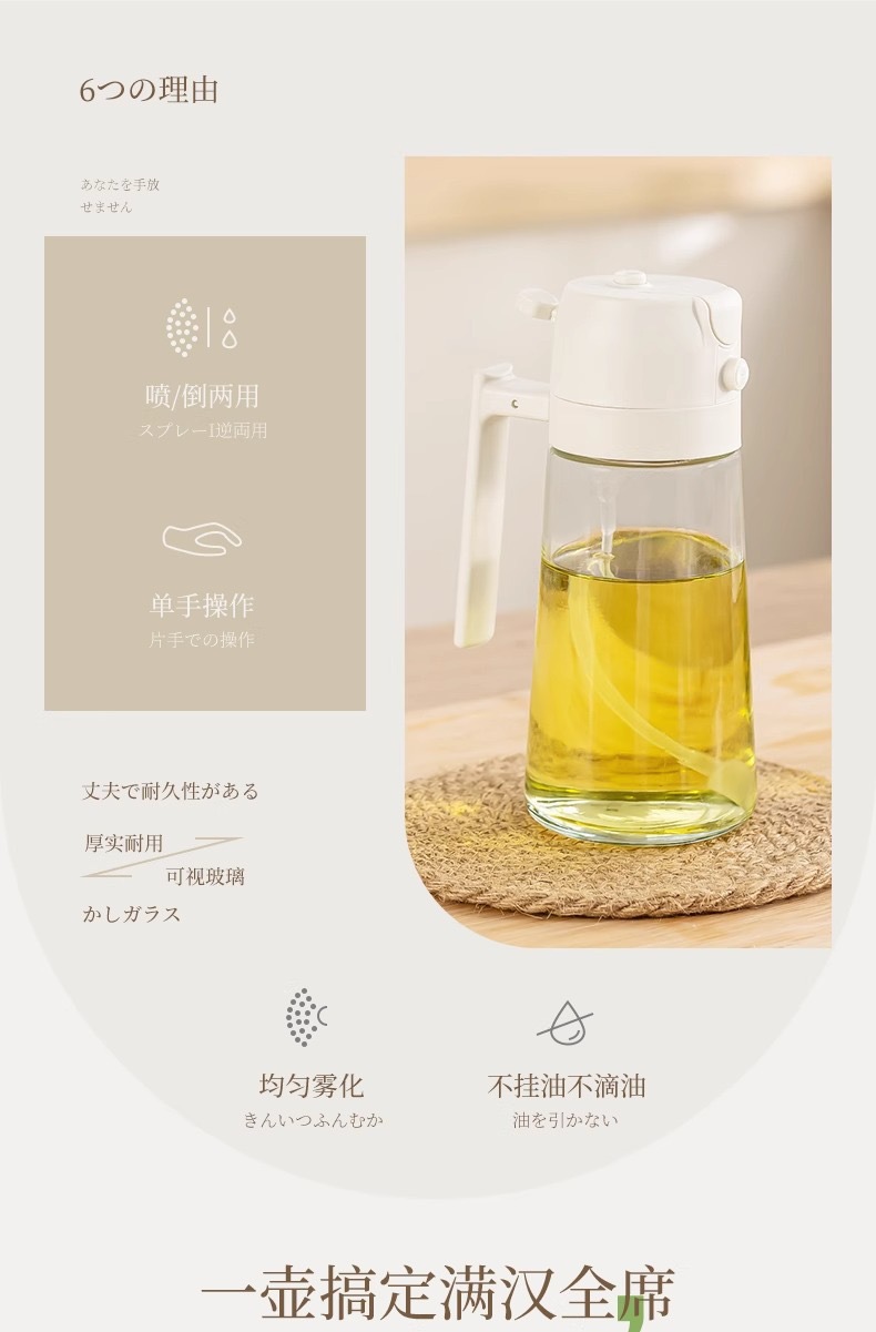 Olla de aceite Olla de rociado de doble propósito Olla de rociado Tanque de aceite a prueba de fugas Botella de aceite de rociado de vidrio Freidora de aire Olla de rociado doméstica de cocina