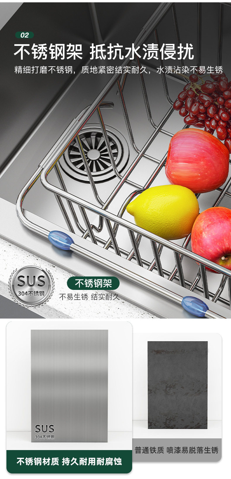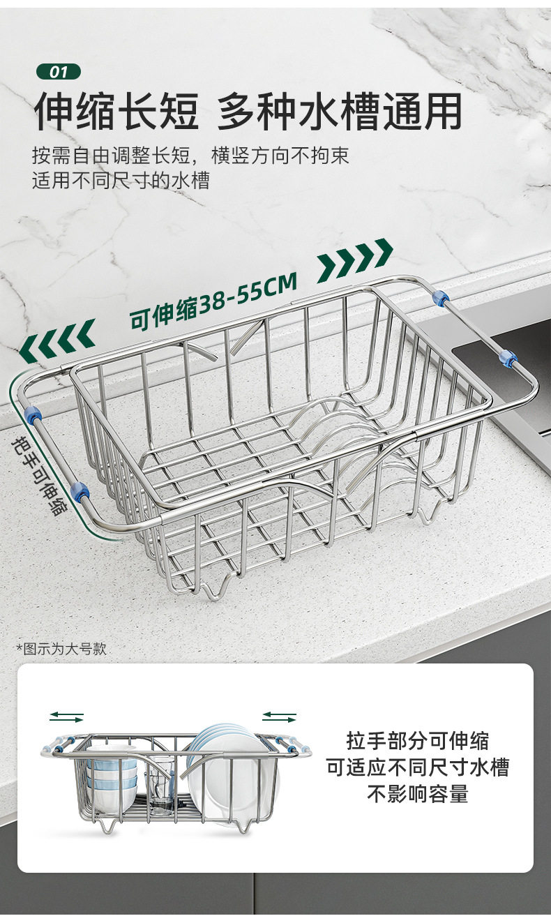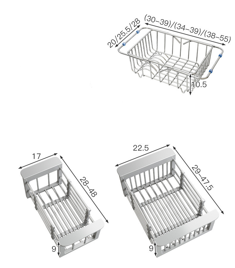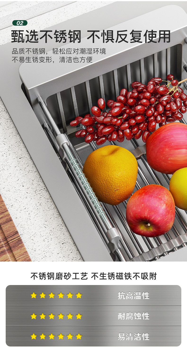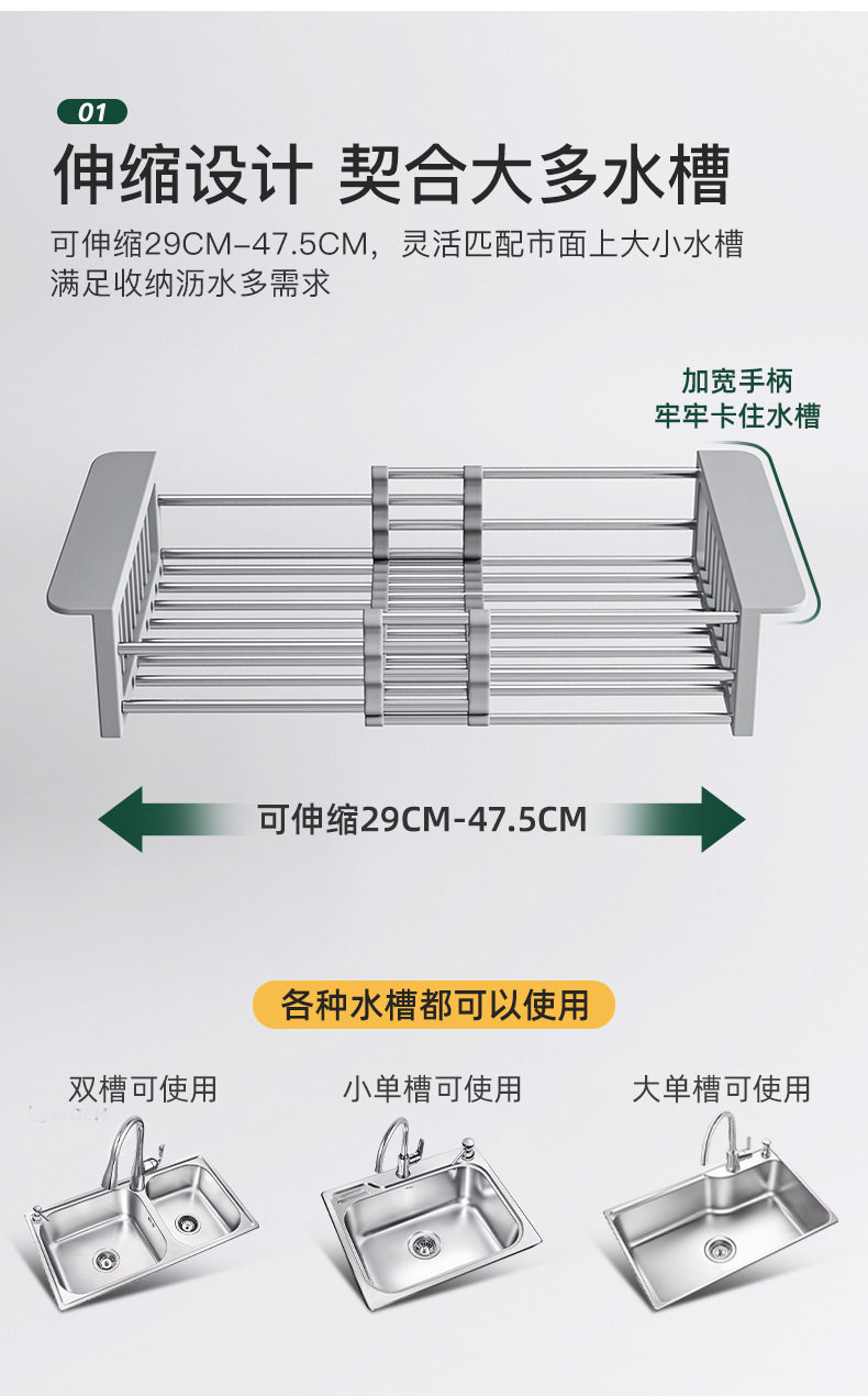 Fábrica directa estante de drenaje retráctil, lavabo de cocina, cesto de drenaje de acero inoxidable, estante de almacenamiento de platos de drenaje