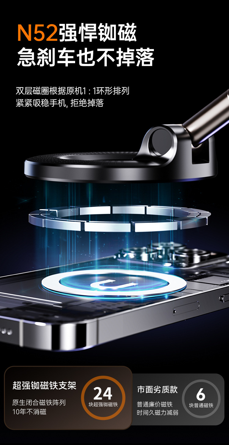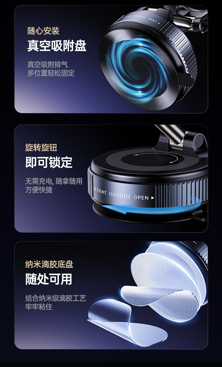Sucador de vacío soporte de succión magnética de teléfono móvil multifuncional montado en el vehículo 2025 nuevo soporte de navegación antivibración de la consola central de escritorio