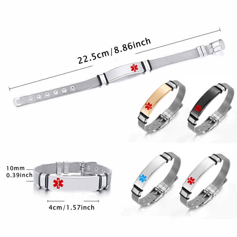 2025 pulsera de acero inoxidable con marca de serpiente médica transfronteriza ajustable información de pulsera de grabación personalizada elementos médicos