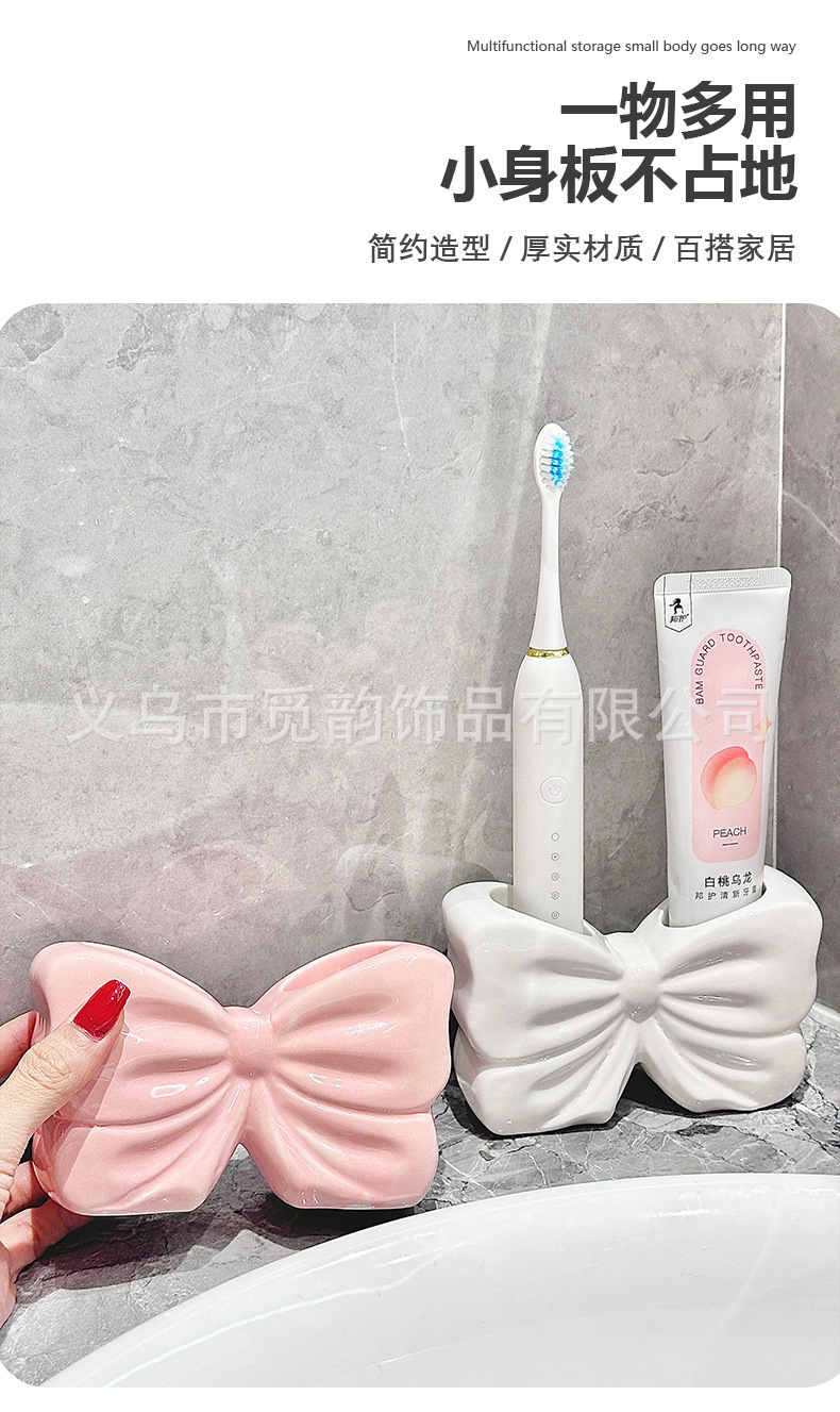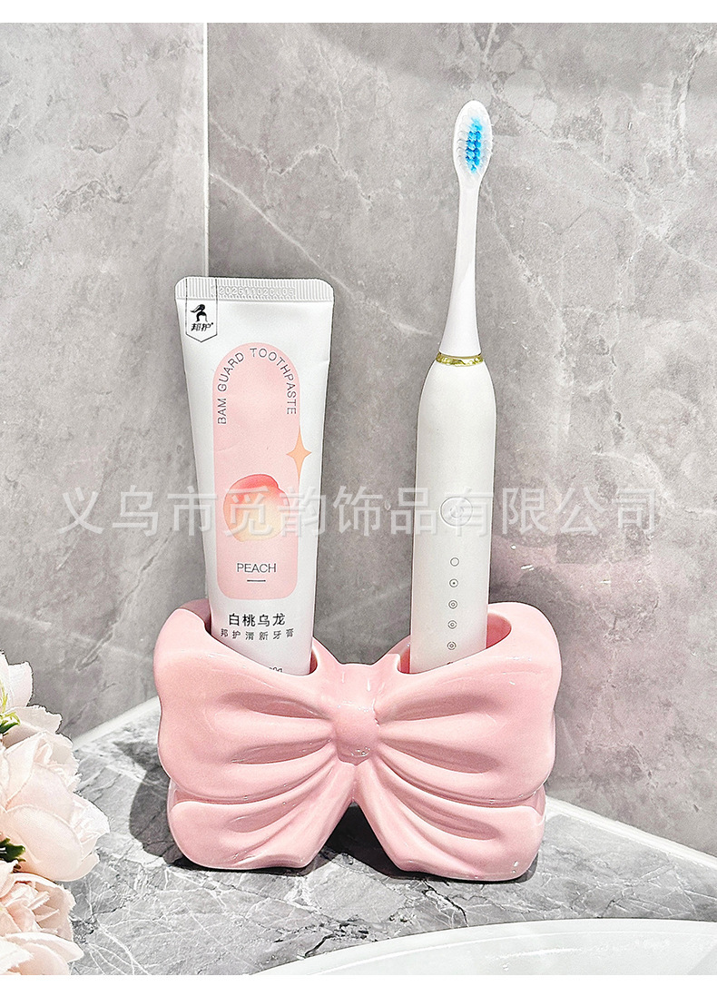 | Color | Estante de cepillo de dientes con lazo blanco, estante de cepillo de dientes con lazo rosa |