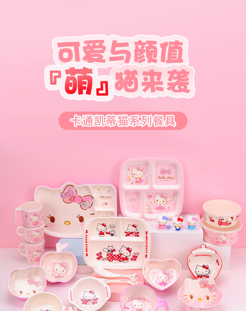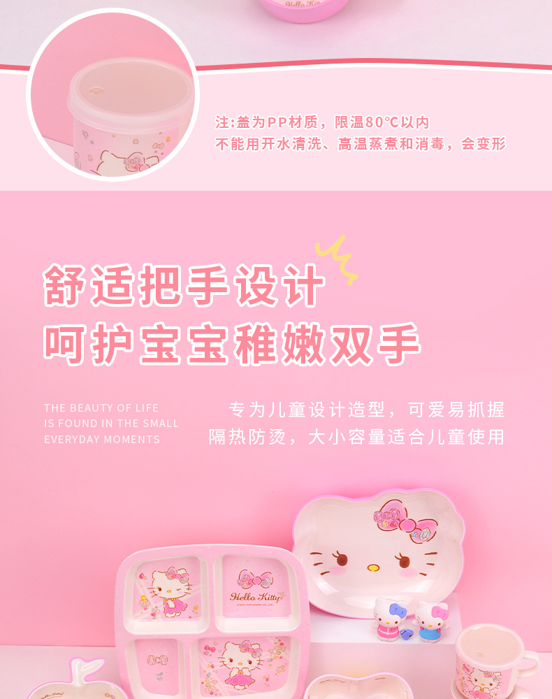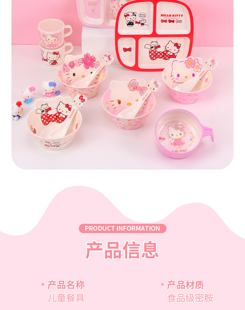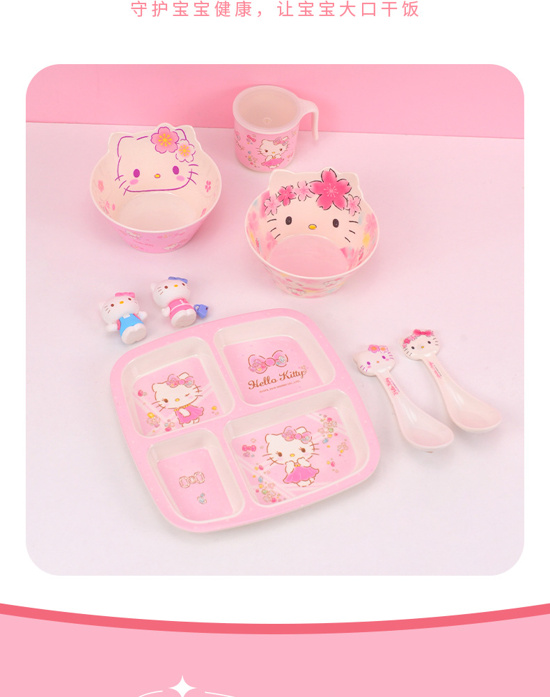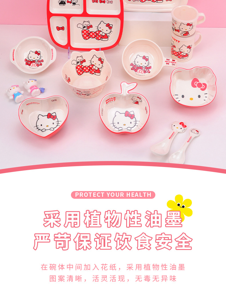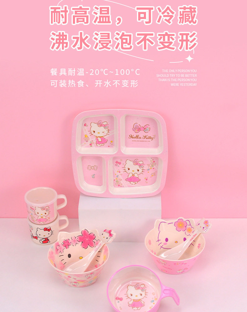 Sanrio Kittie cubiertos infantiles hogar bebés suplemento tazón impermeable a prueba de quemaduras placa dividida en forma de tazón taza de leche
