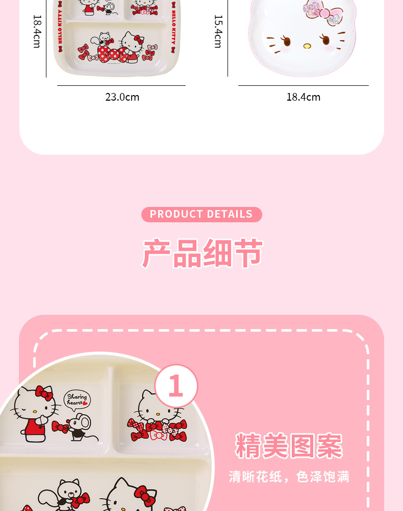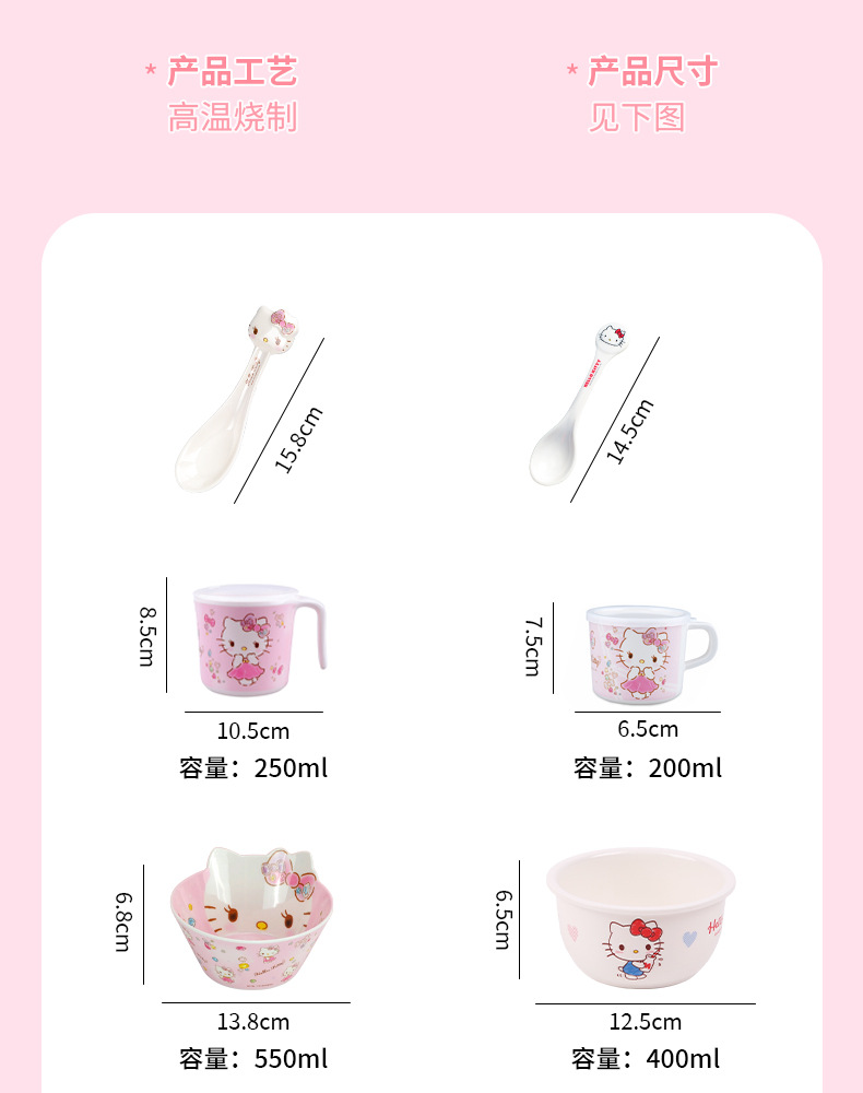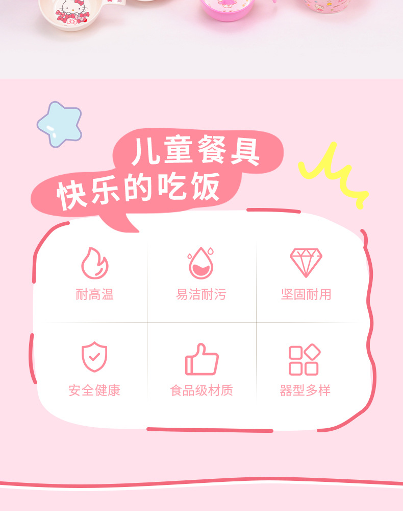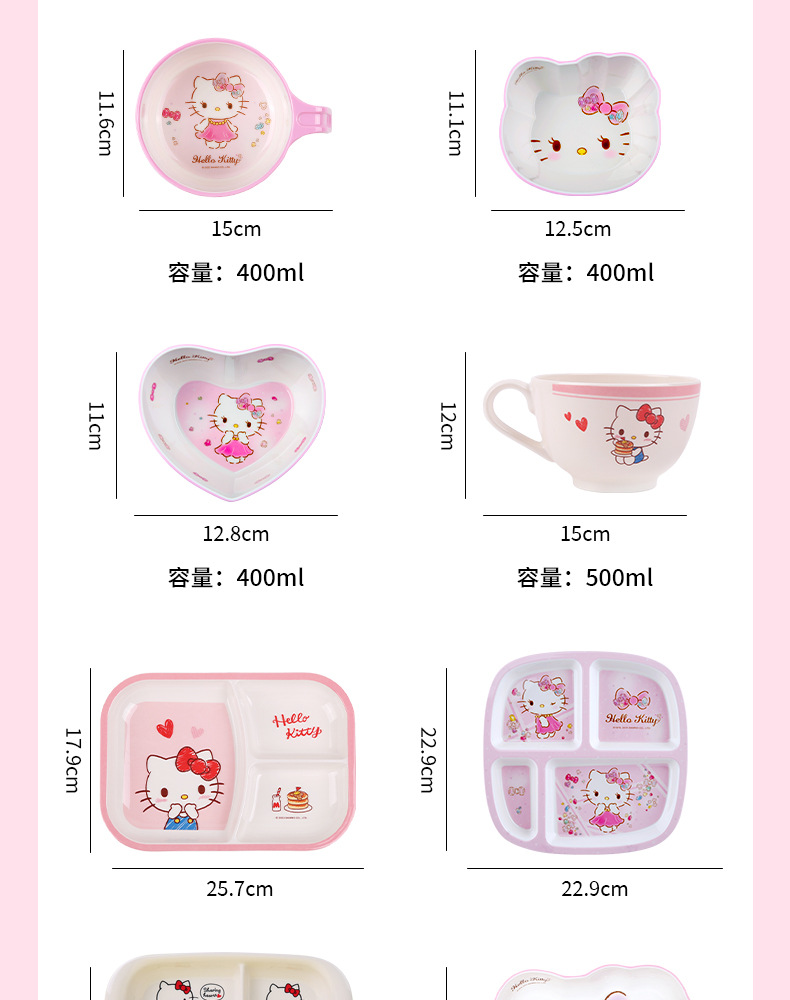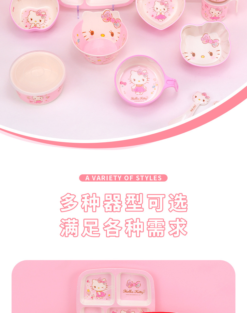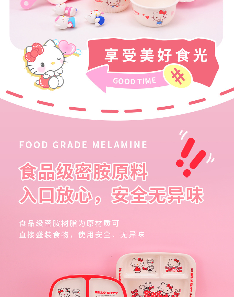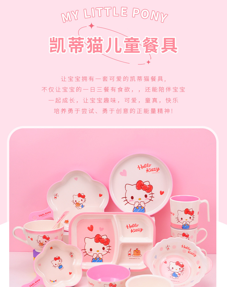 Sanrio Kittie cubiertos infantiles hogar bebés suplemento tazón impermeable a prueba de quemaduras placa dividida en forma de tazón taza de leche