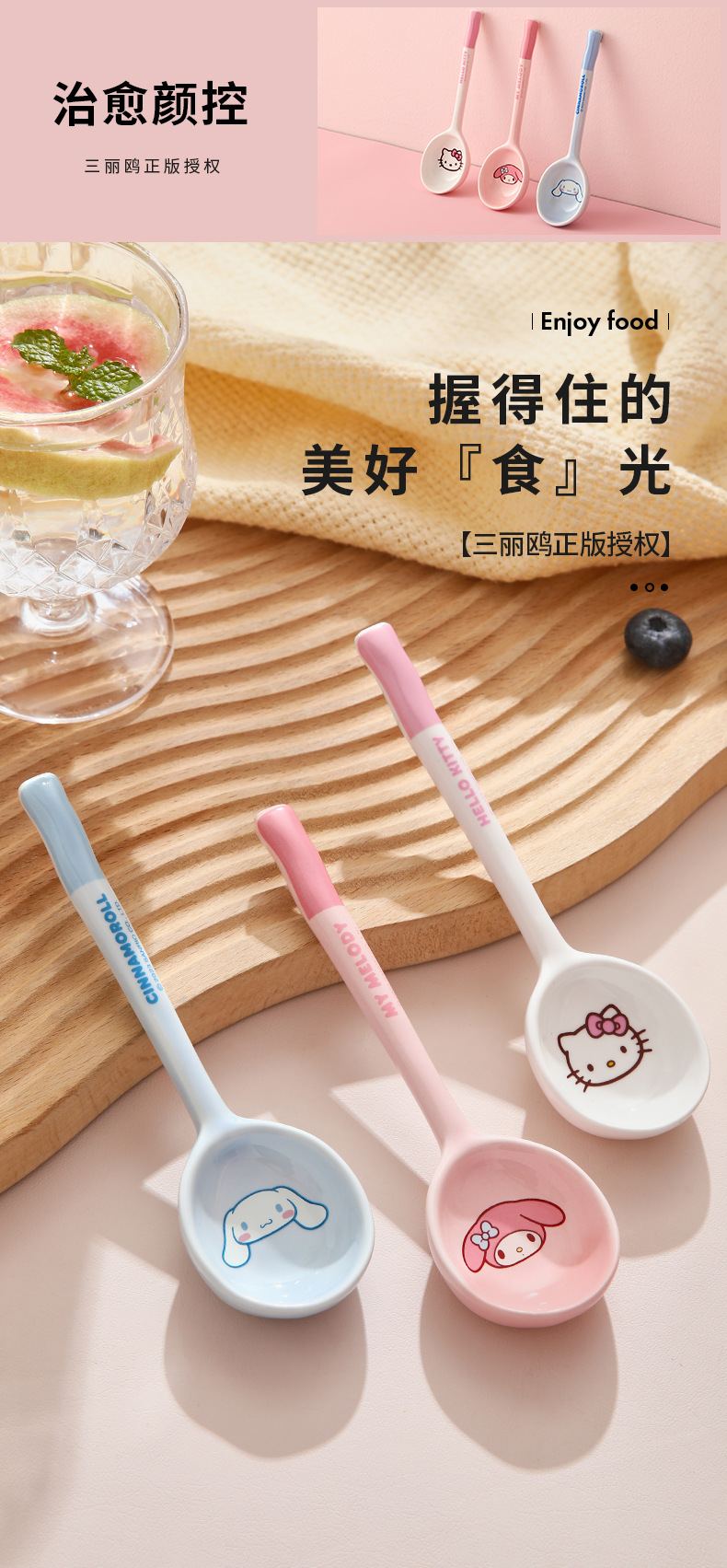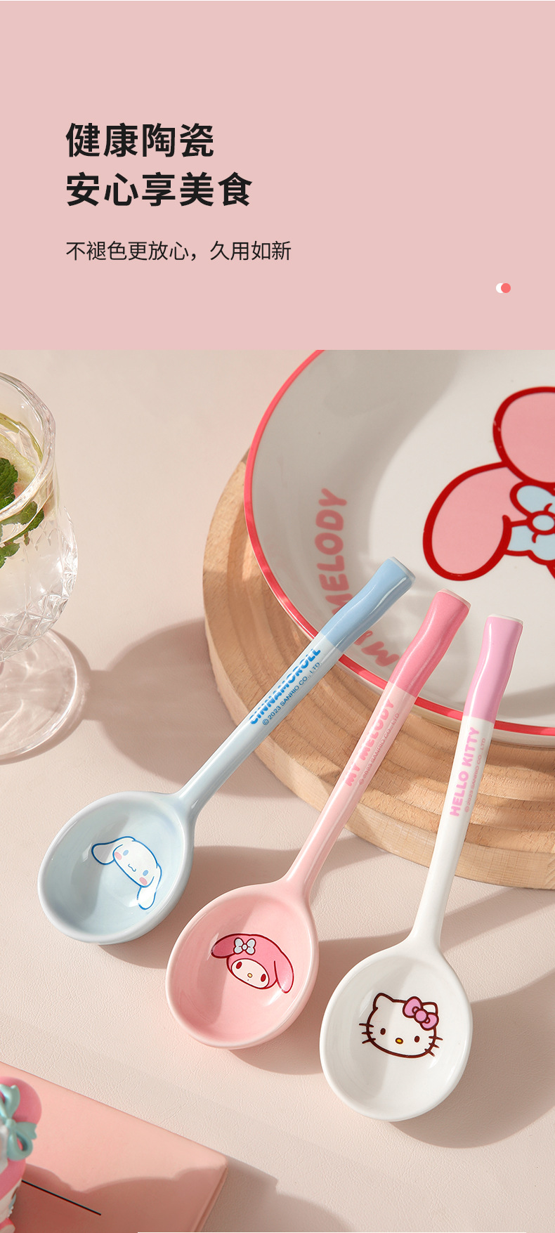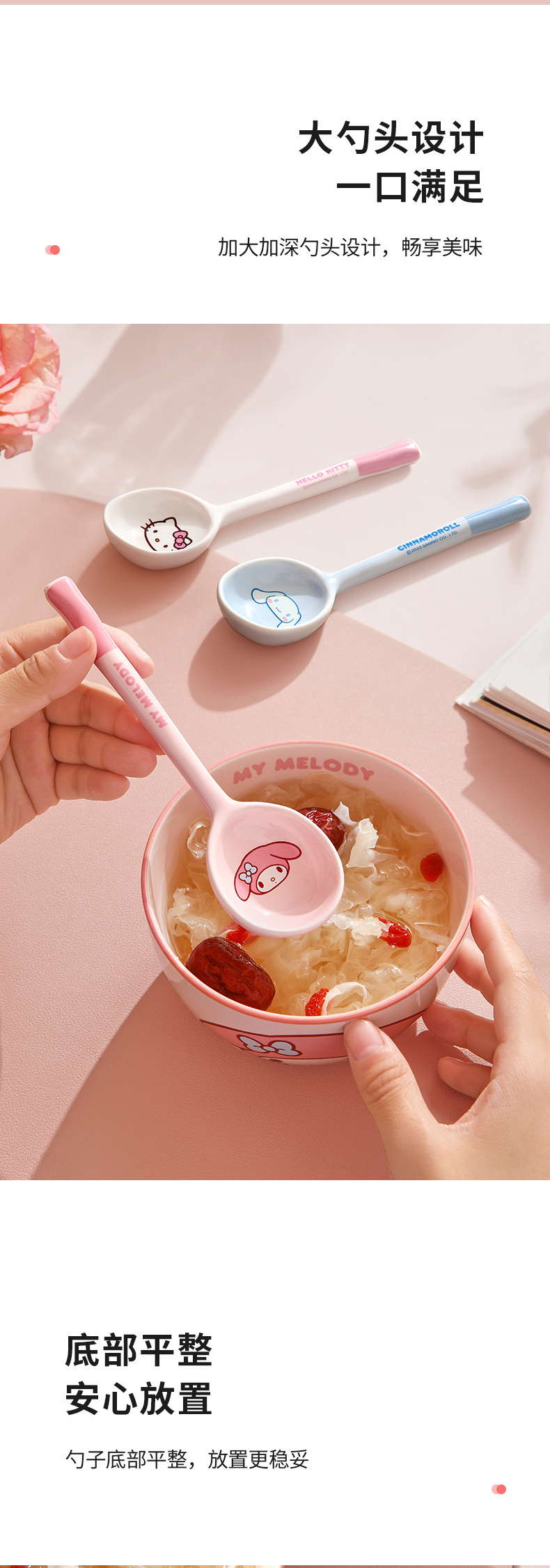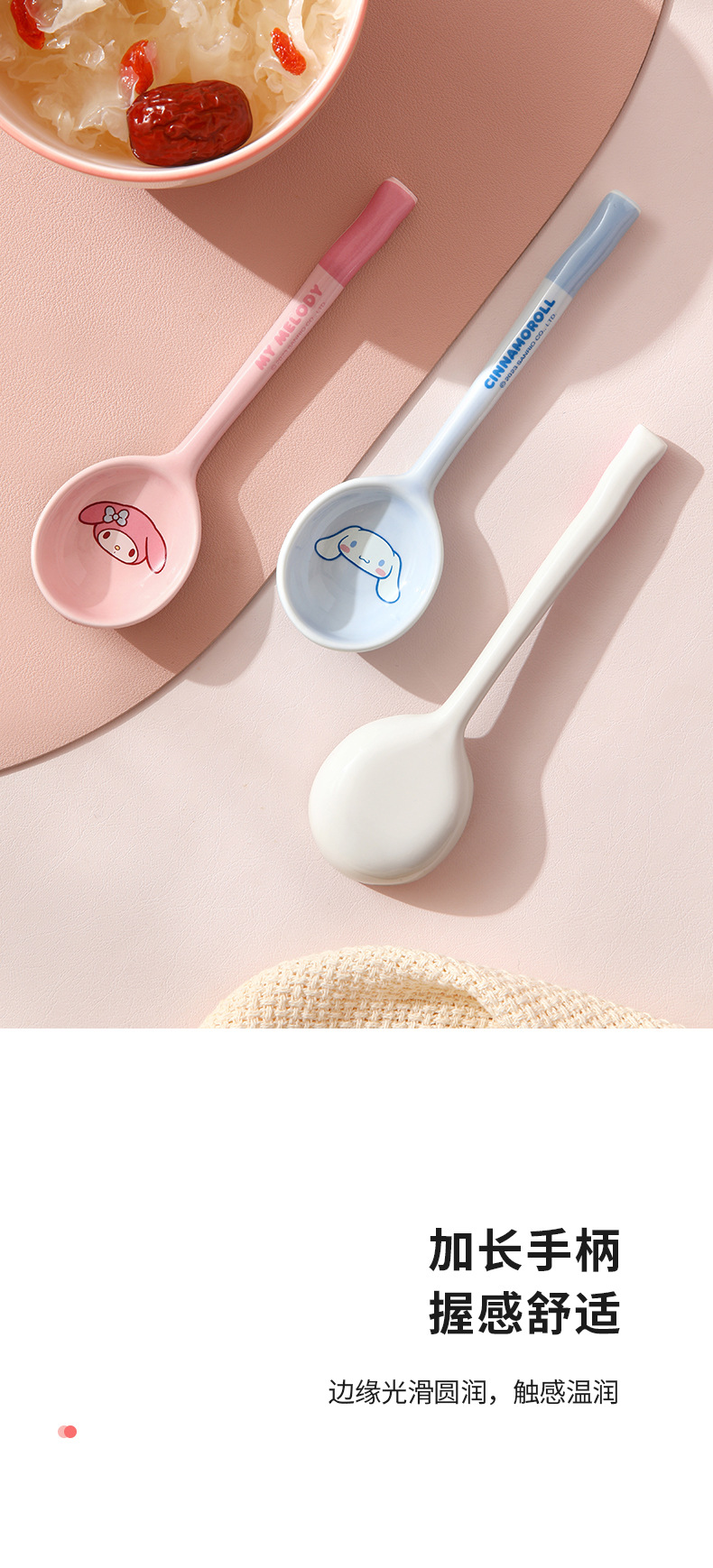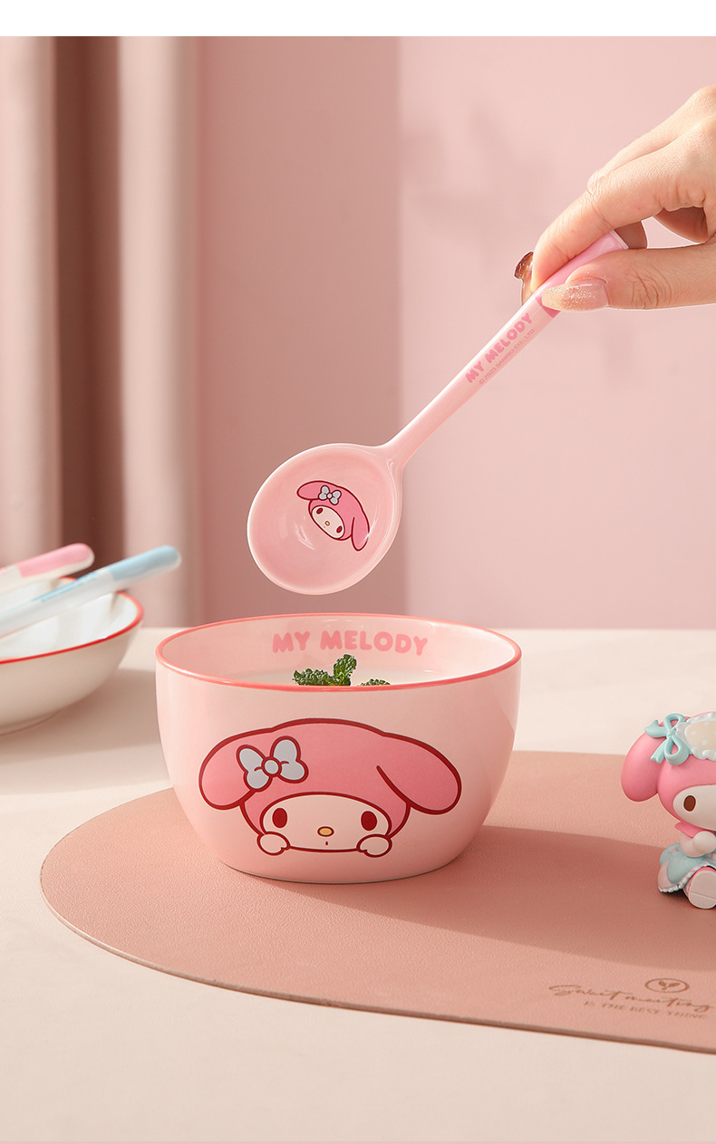 Cuchara de cerámica estilo japonés Sanrio para sopa y comida, linda y estéticamente agradable, especialmente diseñada para niños, hermosa cuchara pequeña, producto original M.