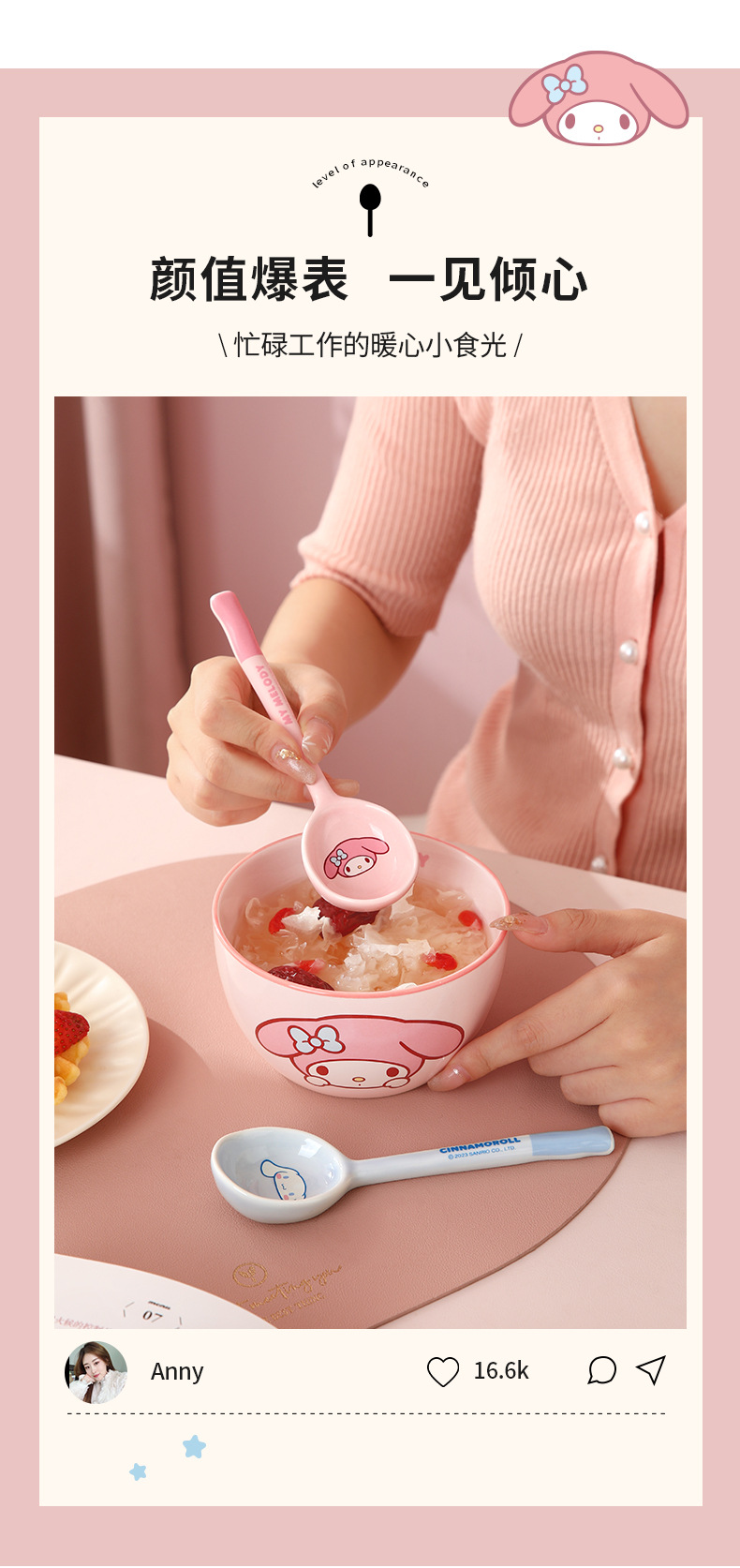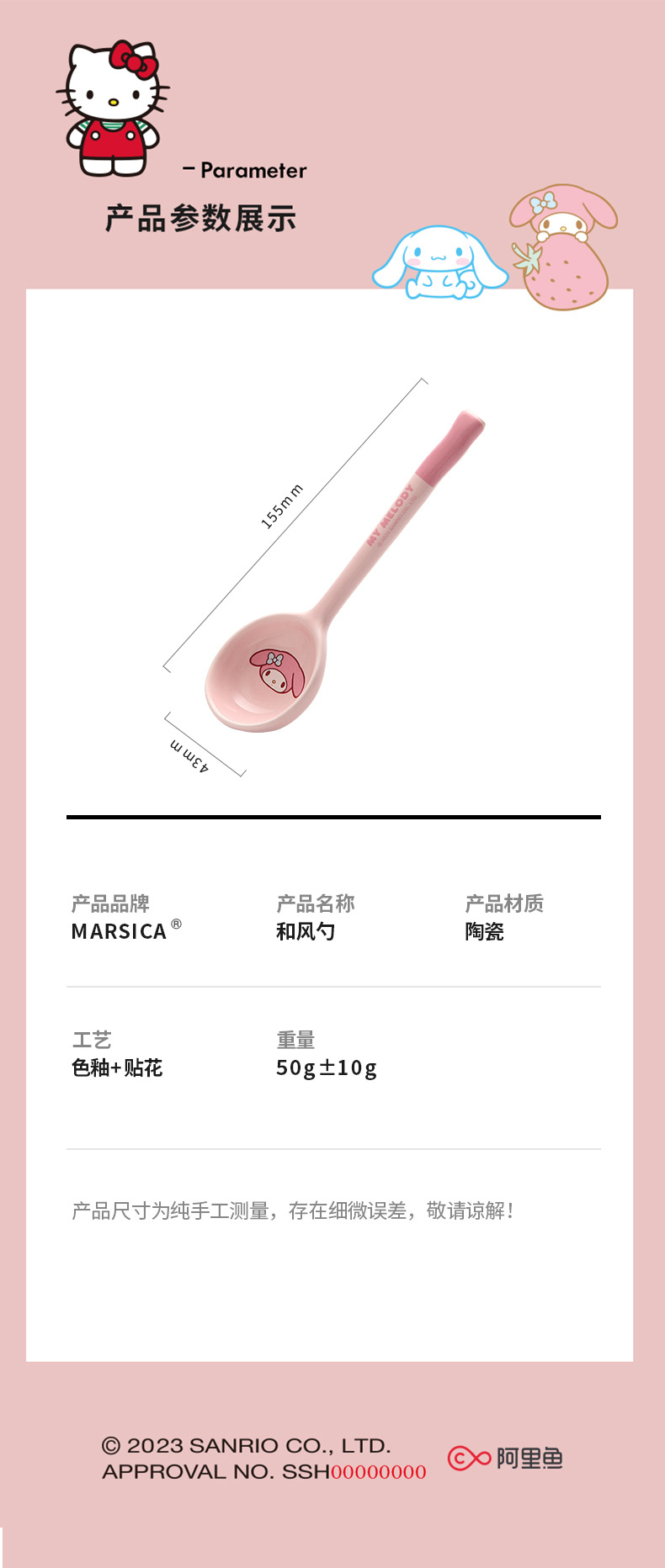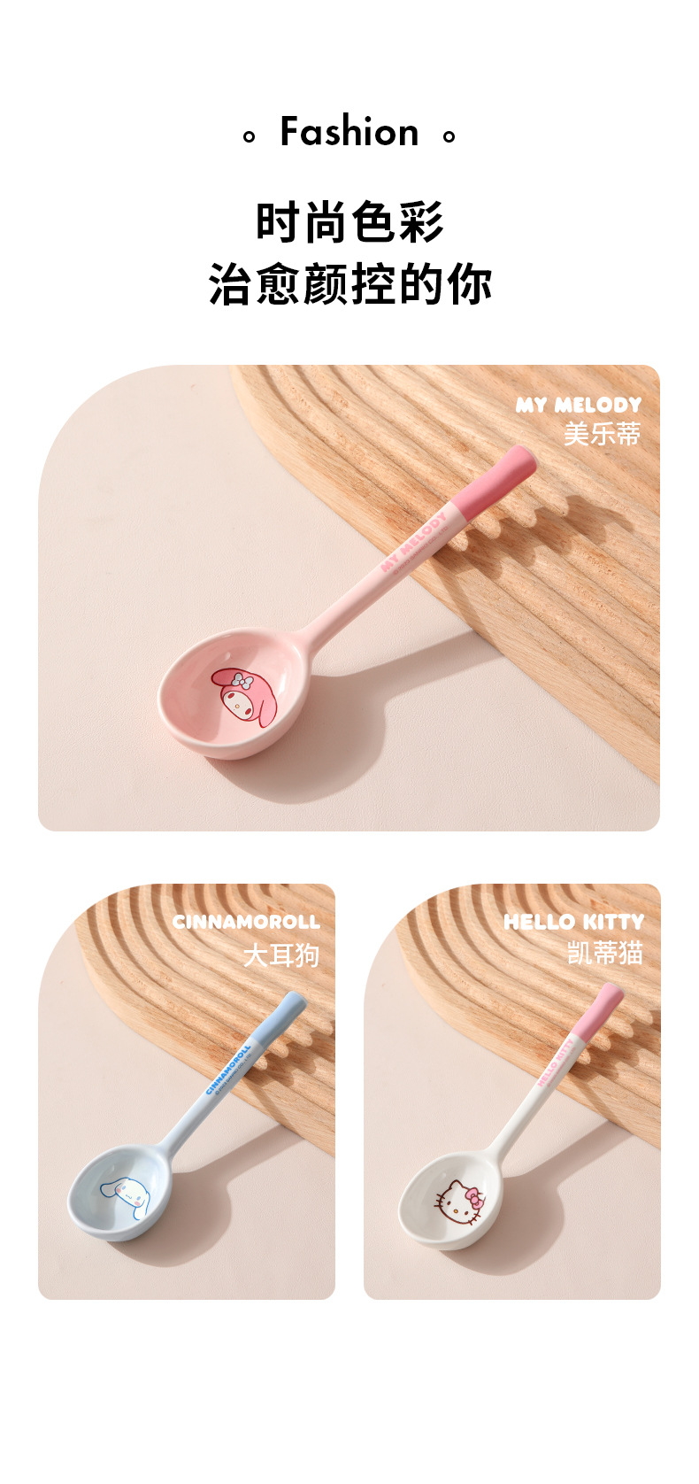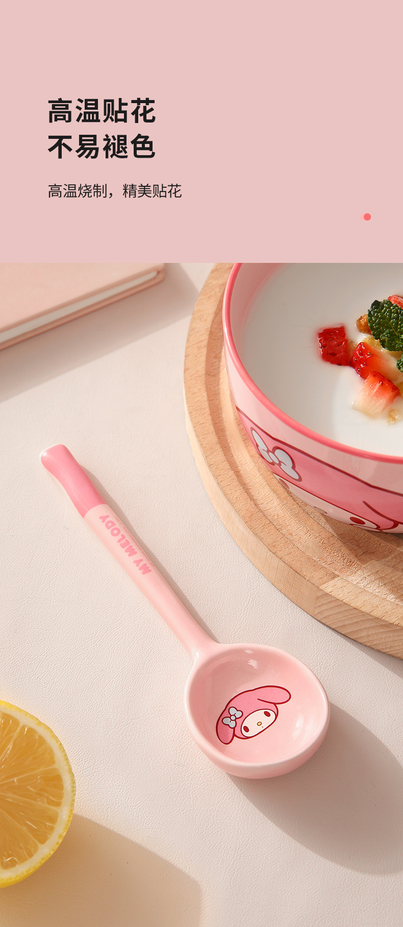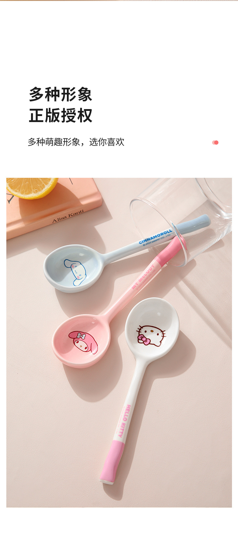 Cuchara de cerámica estilo japonés Sanrio para sopa y comida, linda y estéticamente agradable, especialmente diseñada para niños, hermosa cuchara pequeña, producto original M.