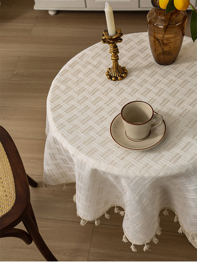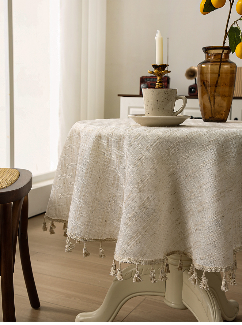 Tejido transfronterizo tela de mesa redonda algodón lino de alto nivel de sensación de mesa de comedor de mesa de té tela de mesa japonesa de alto valor de cara