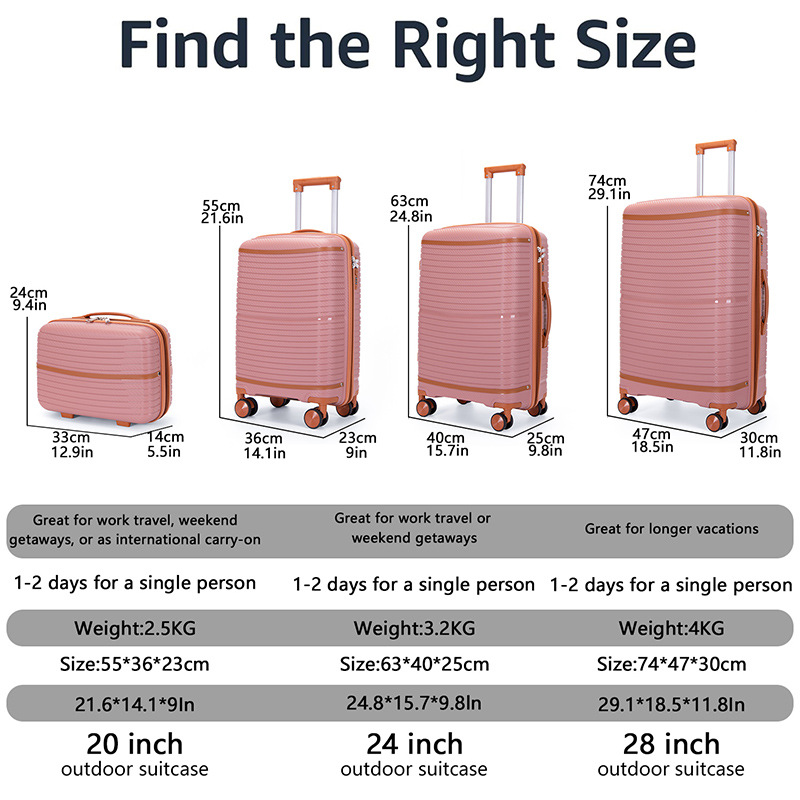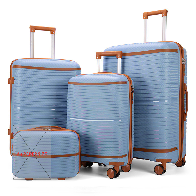 Juego de cuatro maletas de polipropileno con ruedas, equipaje de viaje con cremalleras a prueba de explosiones, ruedas universales, maleta de mano, portátil.