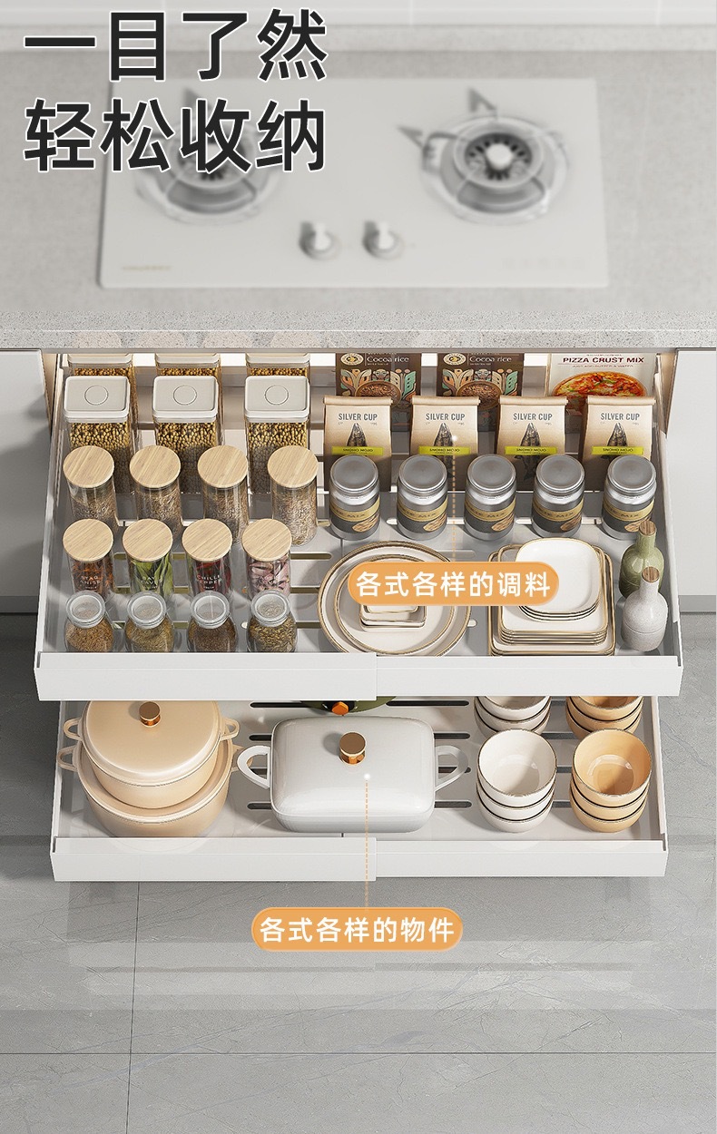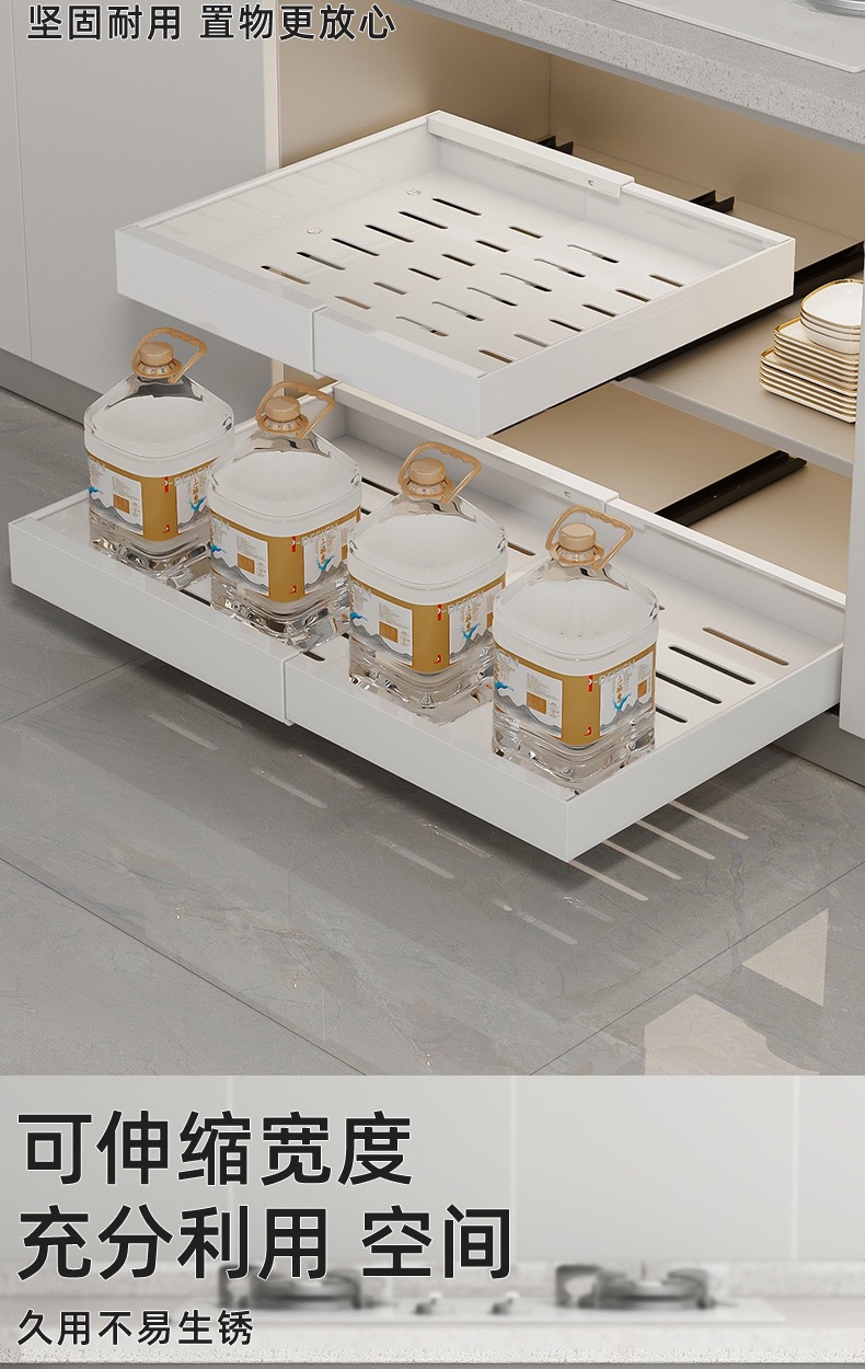 Gabinete retráctil, estante para cajones, utensilios para ollas, canasta de extracción, caja de almacenamiento, fregadero inferior, estante de almacenamiento extraíble