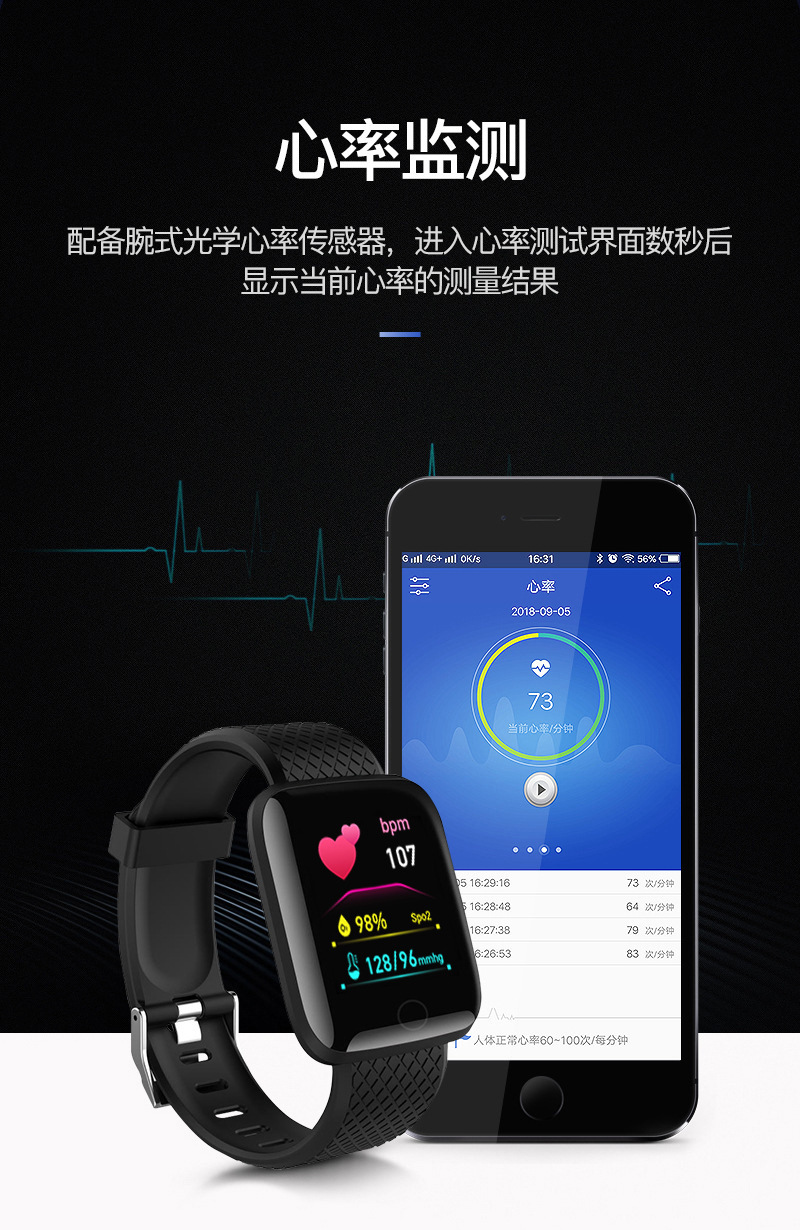 116plus pulsera inteligente oxígeno presión arterial frecuencia cardíaca sueño D18SD20Y68 deportes asistente de salud inteligente