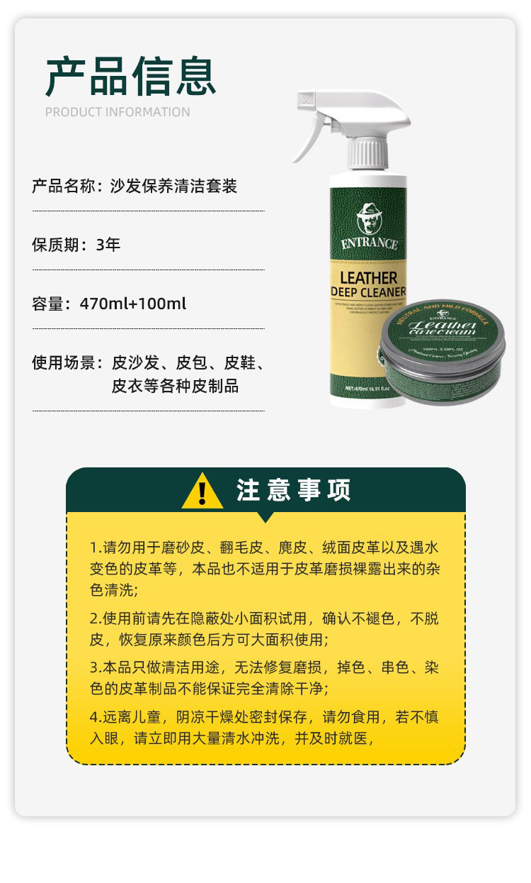 | Clasificación de colores | Limpiador 470ml * 1,Crema de mantenimiento 100ml * 1,Kit de limpieza y mantenimiento * 1,El limpiador contiene herramientas de limpieza * 1,Crema de mantenimiento con herramientas de limpieza * 1,Kit de limpieza y mantenimiento con herramientas de limpieza * 1 |
