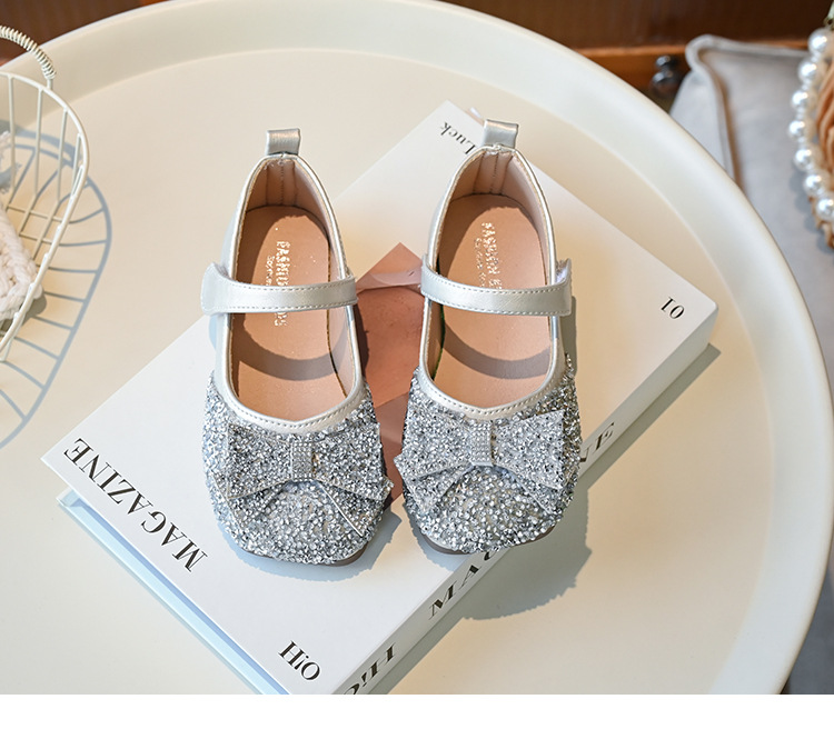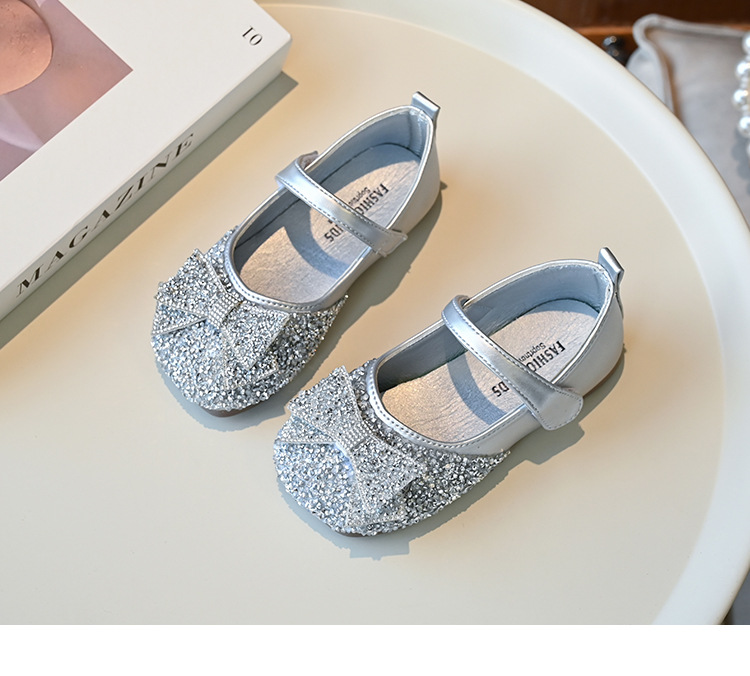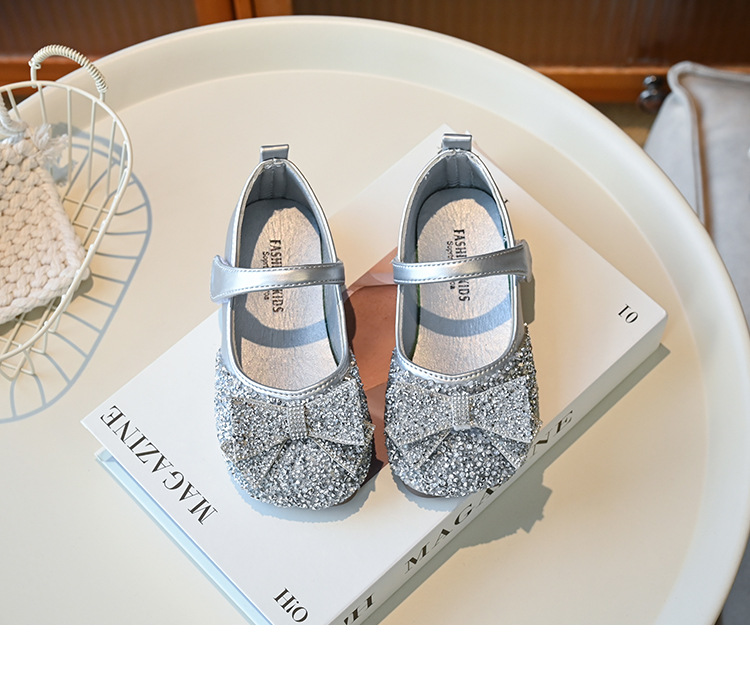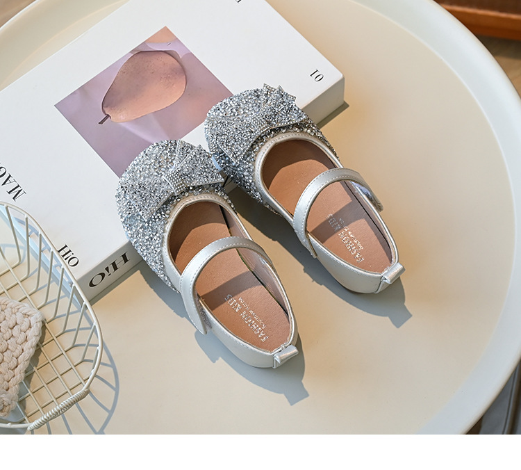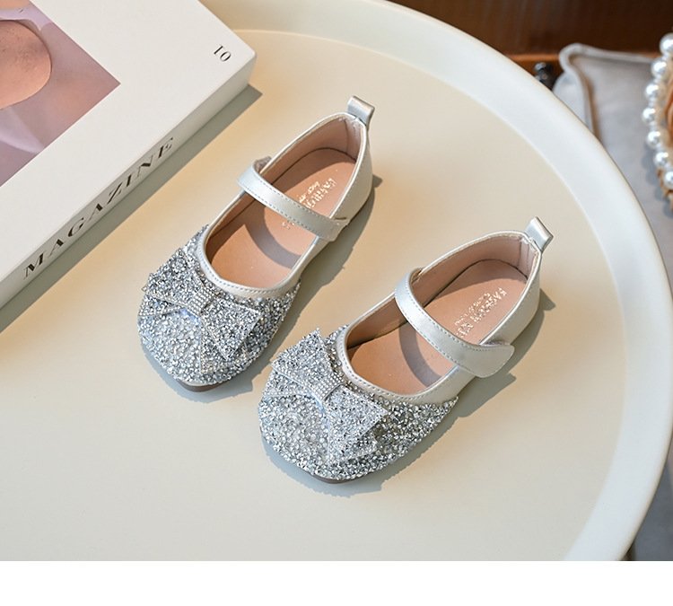 Zapatos de princesa para niñas otoño nuevos zapatos de cristal coreanos zapatos de diamante para niñas vestido con suela suave zapatos de cuero princesa pequeña moda