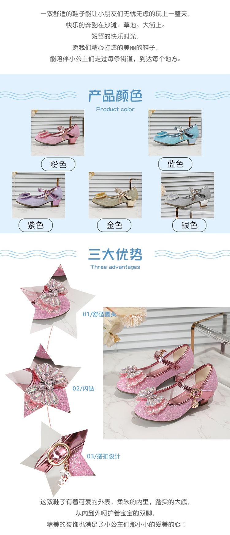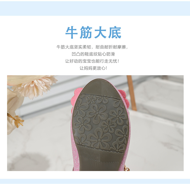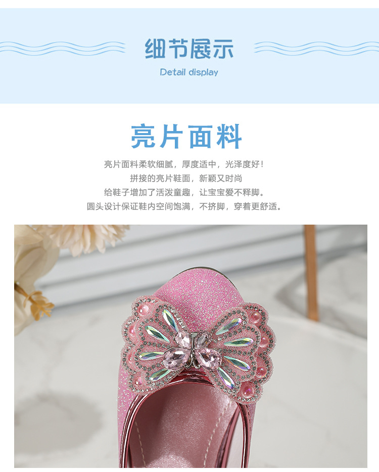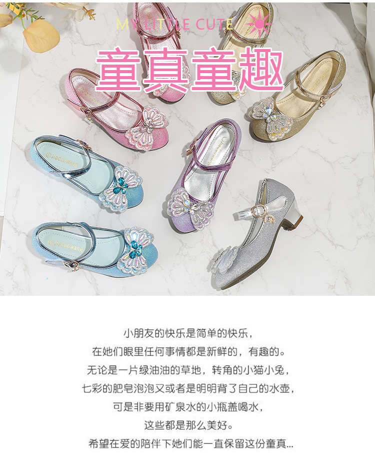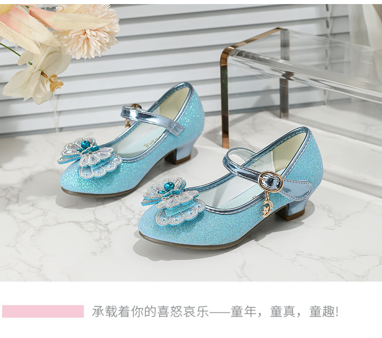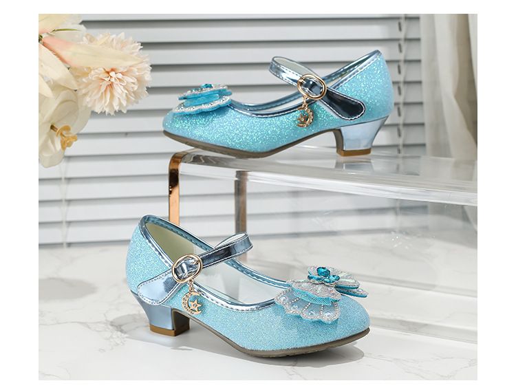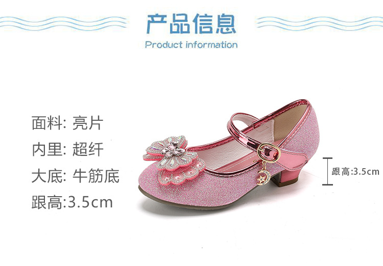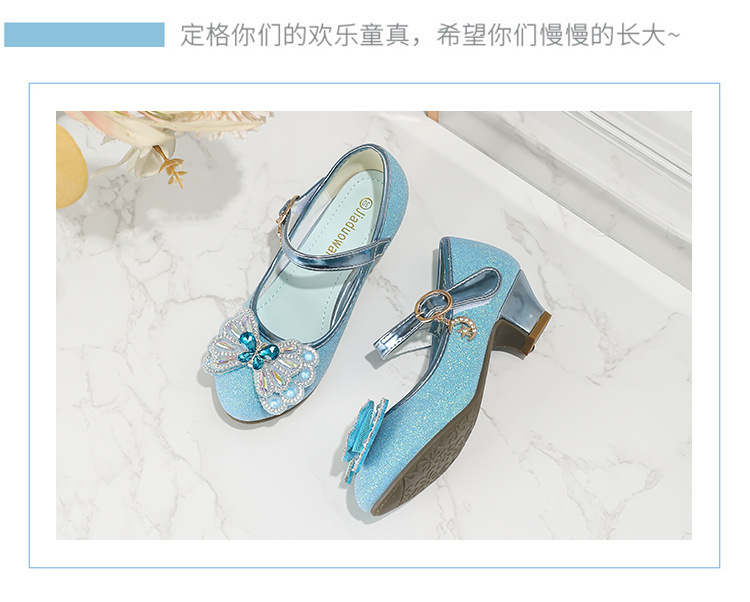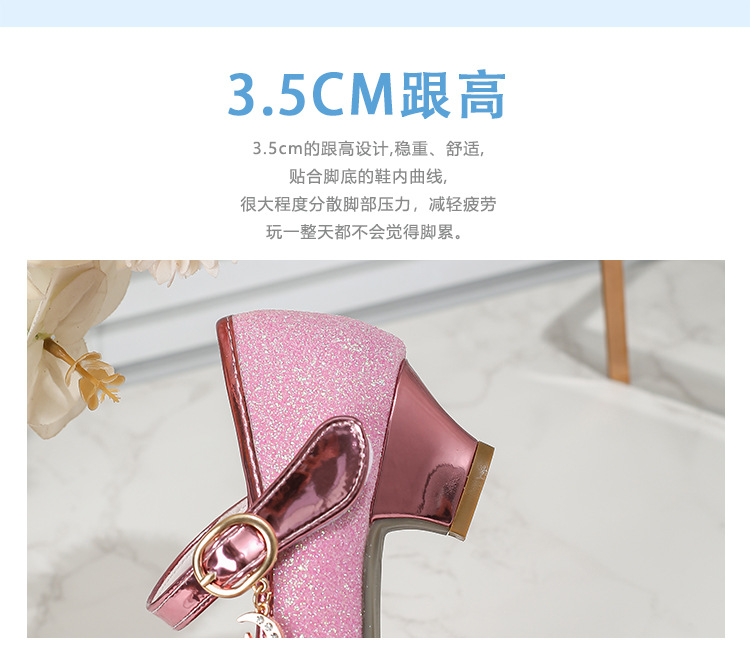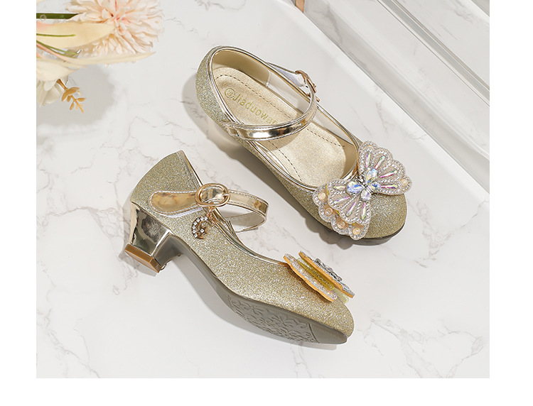 Niñas de tacones altos 2025 primavera brillante zapatos de cuero para niños princesa zapatos de cristal con vestido de espectáculo zapatos de sola suave