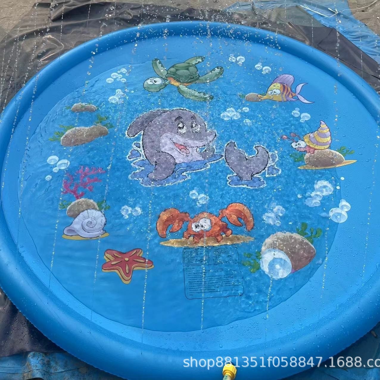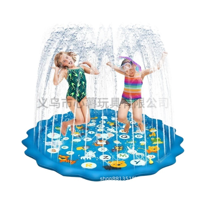 Alfombra de agua para niños con rociador, juguete de exterior, alfombra de rociado de césped bicolor con alfabeto y delfín, alfombra rociadora de agua.