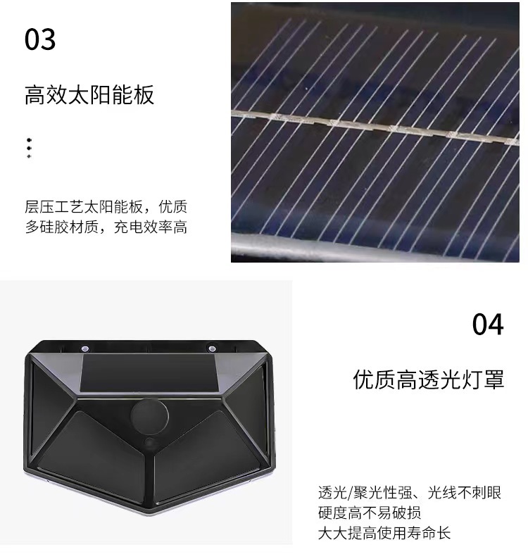 Lámpara solar Lámpara de inducción del cuerpo humano Lámpara de pared exterior luminosa cuatro lados Lámpara de jardín Lámpara de jardín Lámpara de corredor Lámpara de ahorro de energía Lámpara de calle