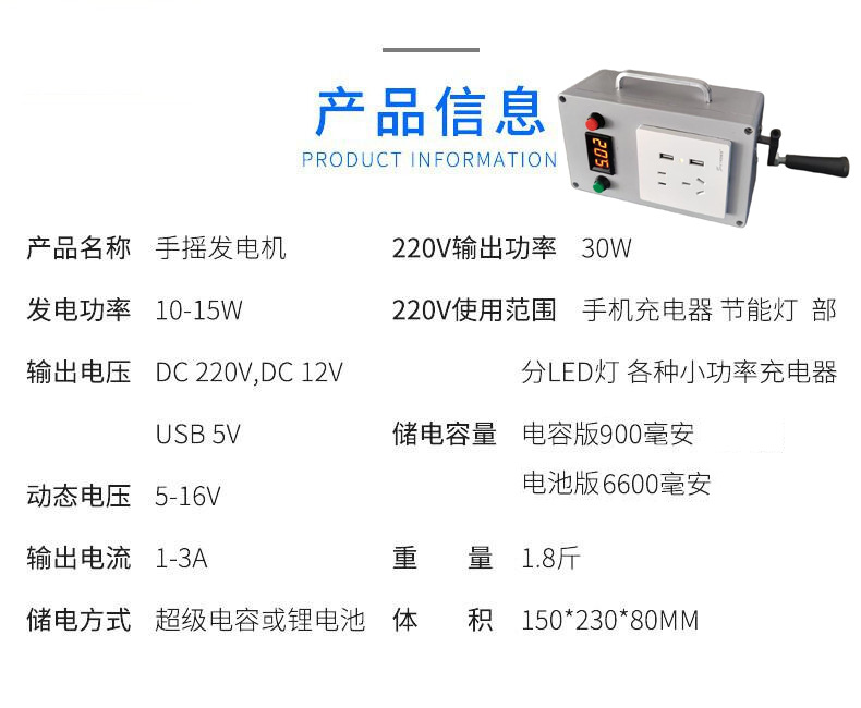 Generador de manivela fuente de alimentación al aire libre 220V 150 vatios iluminación de campamento al aire libre banco de energía portátil fuente de alimentación de emergencia