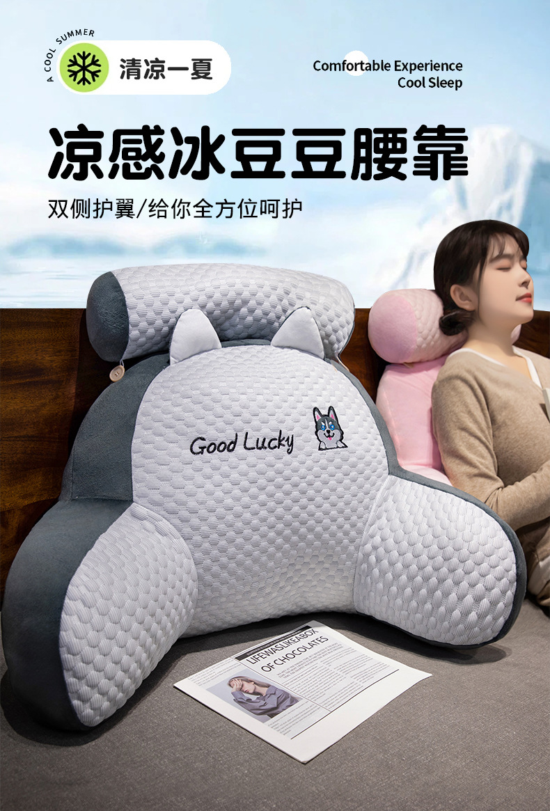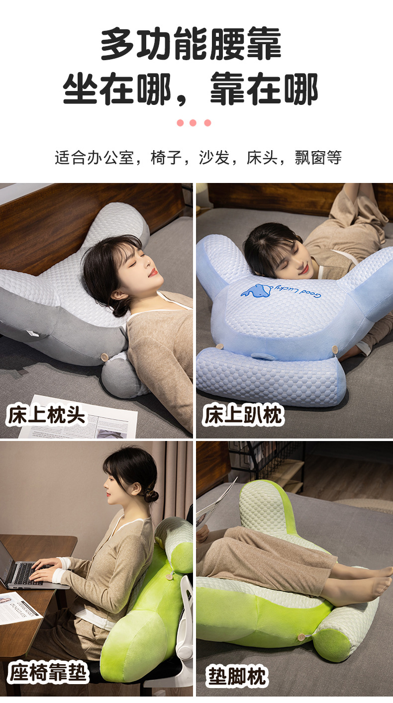 Frío y frío, frijol de hielo, cojín de cabecera de cintura en zigzag, animal lindo, conejo, dinosaurio, delfín, dibujos animados divertidos.