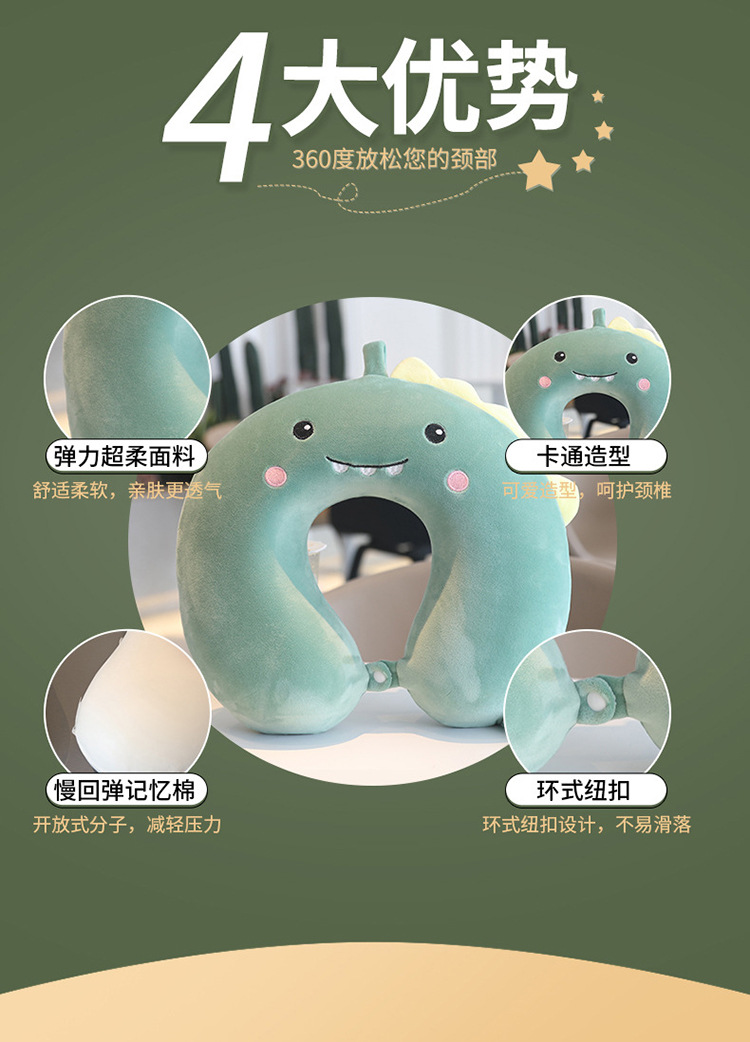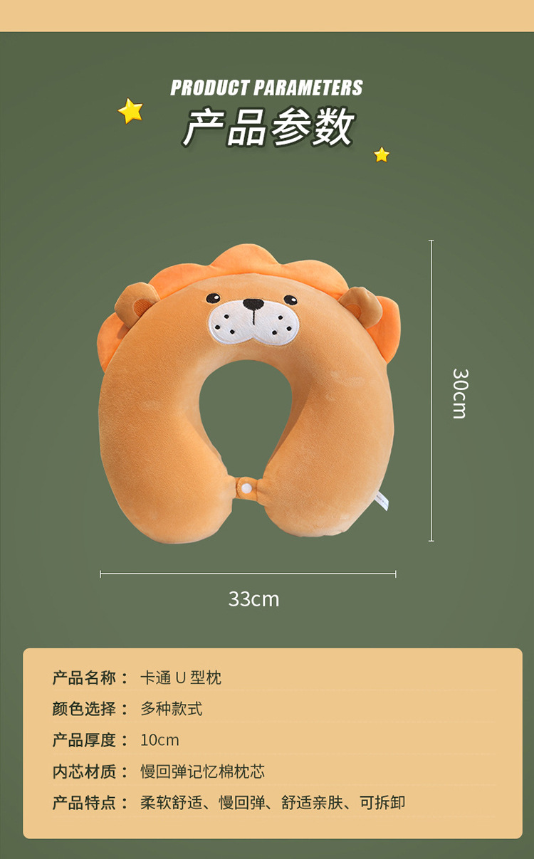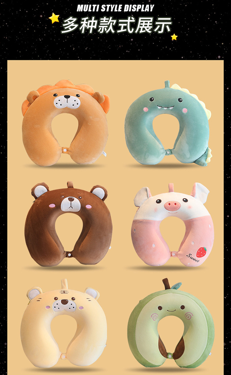 Shangheng Cartoon Animal Memory Cotton Almohada para el cuello del avión Almohada para el cuello de rebote lento más almohada en forma de U Almohada para adultos