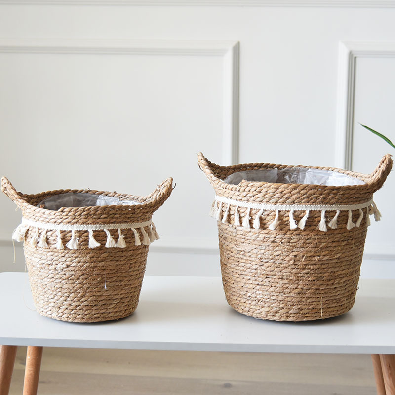 Vina nórdica trenzada de paja trenzada cesta trenzada de maceta trenzada cesta trenzada de bolsa trenzada de bambú trenzada a mano