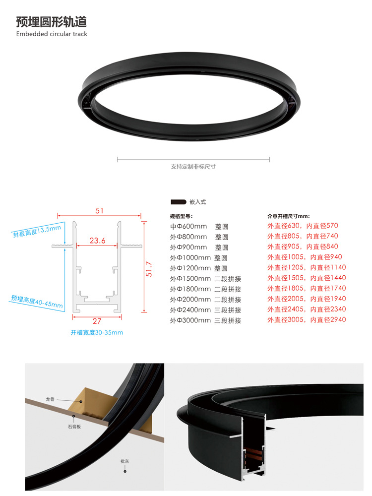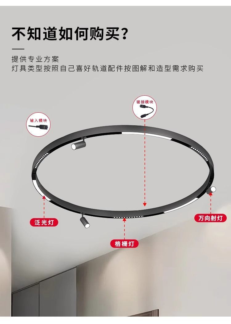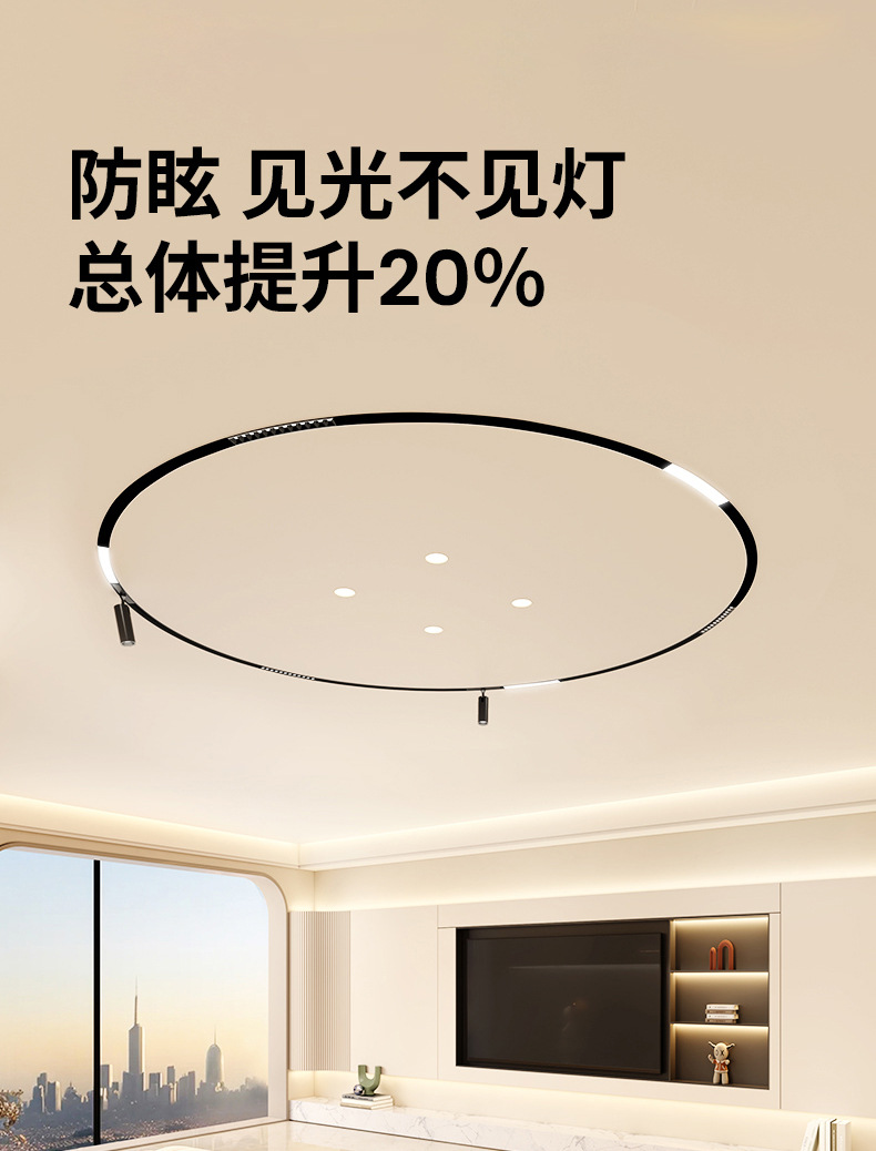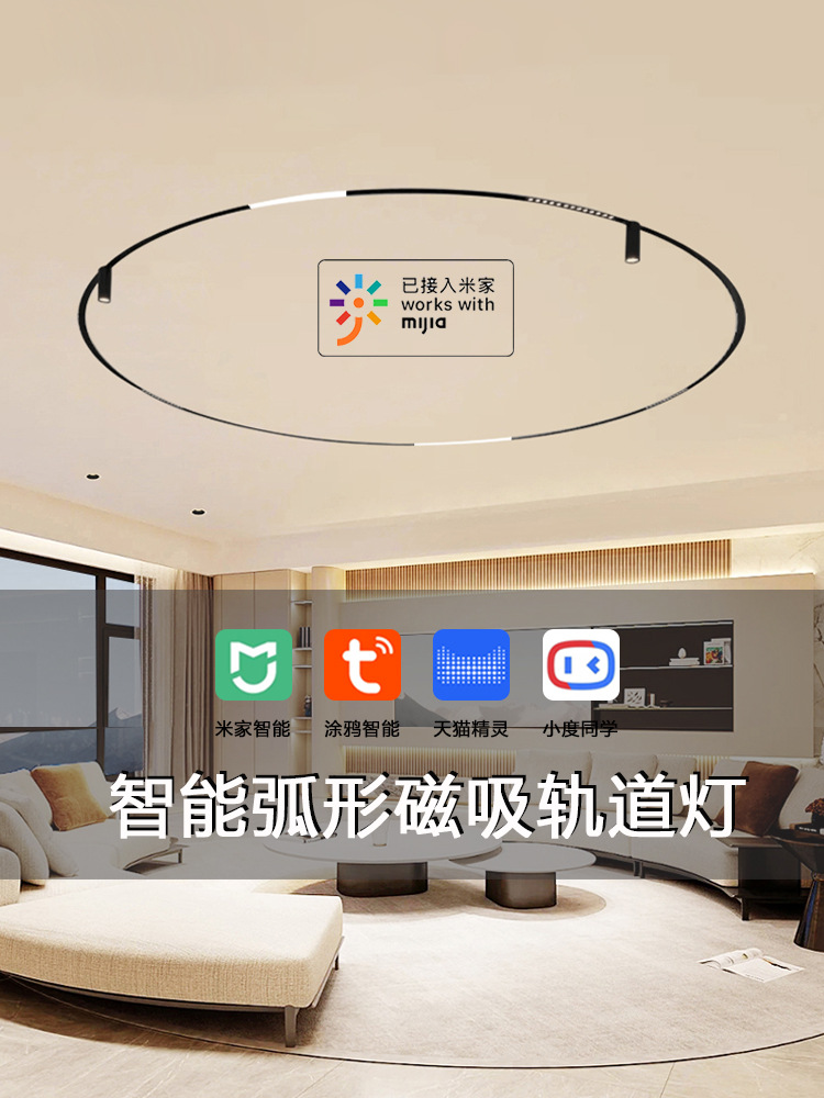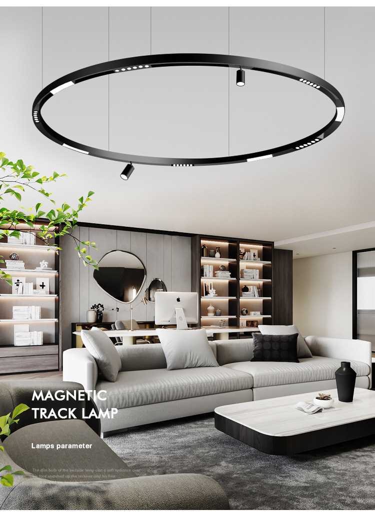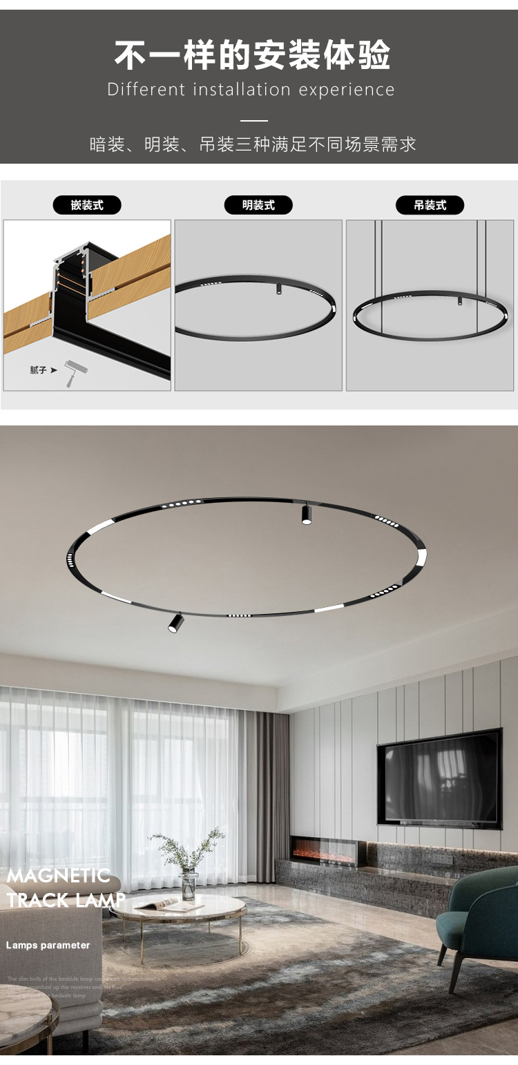lámpara de órbita de atracción magnética redonda inteligente de anillo de arco incrustado abierto de montaje oculto sala de estar sin lámpara principal de iluminación de línea