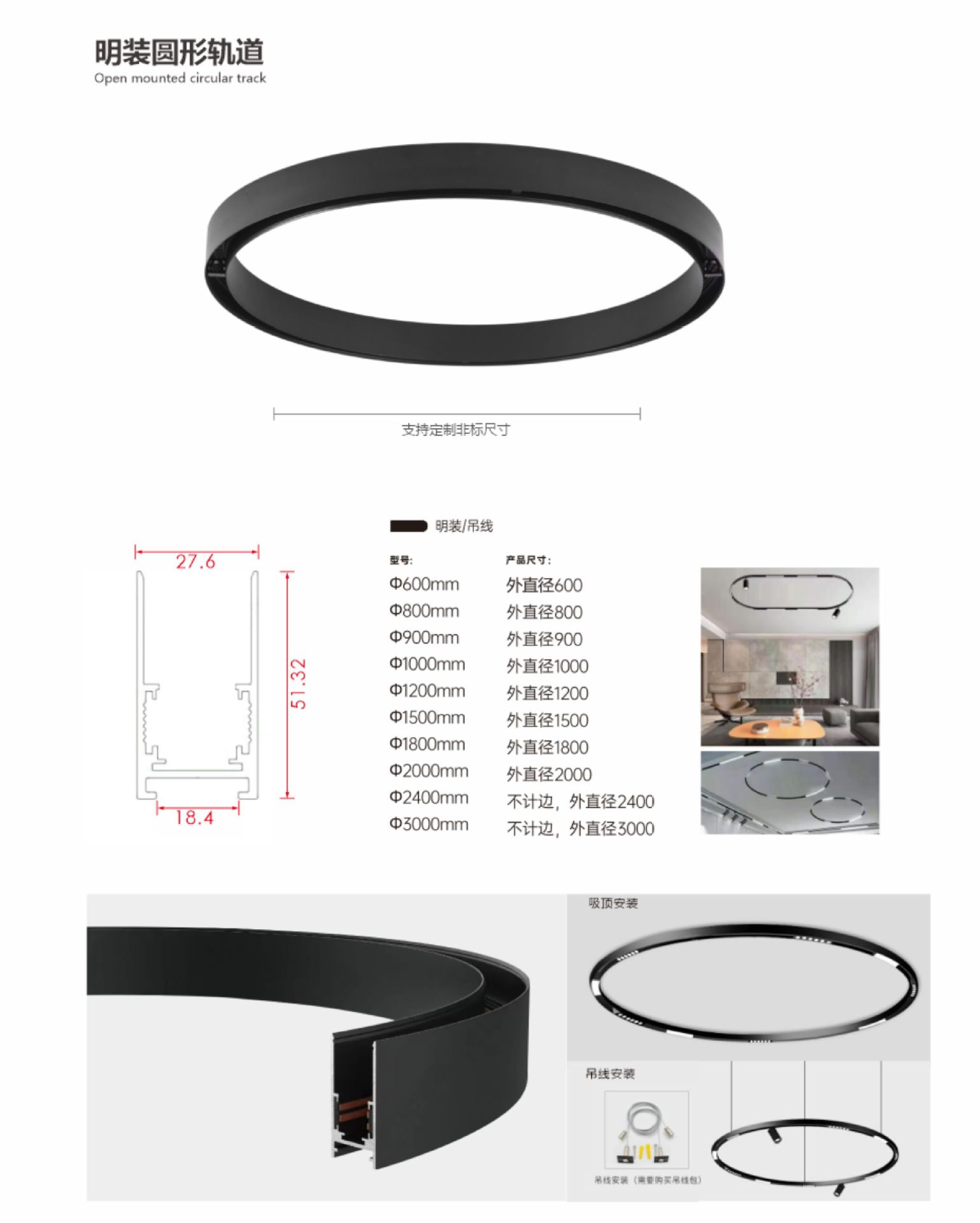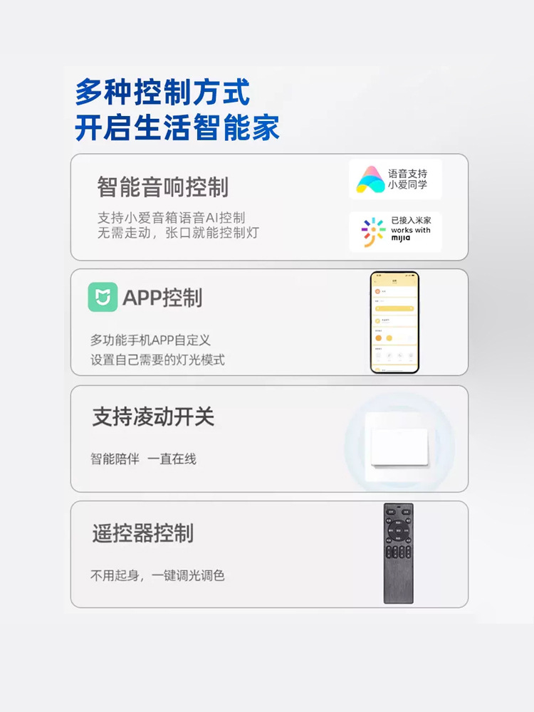 | Temperatura de color | Diámetro exterior 600mm, diámetro exterior 800mm, diámetro exterior 900mm, diámetro exterior 1000mm, diámetro exterior 1200mm, diámetro exterior 1500mm, diámetro exterior 1800mm, diámetro exterior 2000mm, diámetro exterior 2400mm, diámetro exterior 3000mm, luz cálida 3000K, luz neutra 4000K, luz blanca 6000K, se ha conectado a Mijia (tono de atenuación inteligente) |