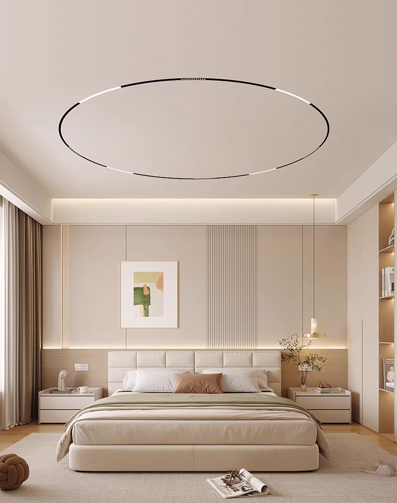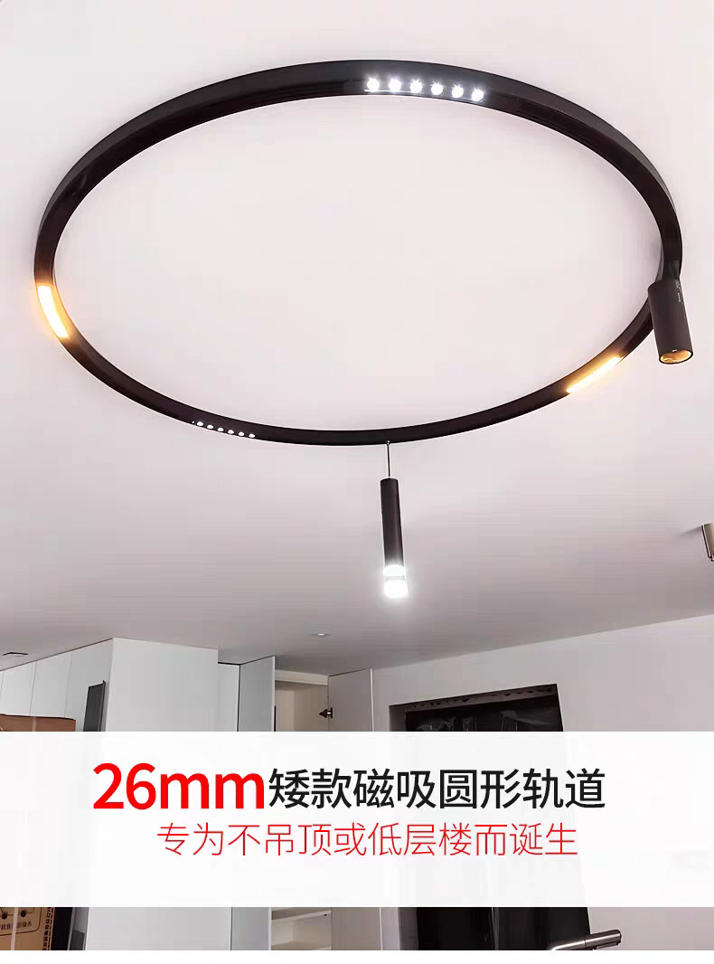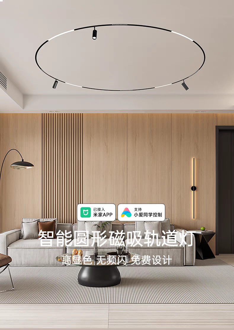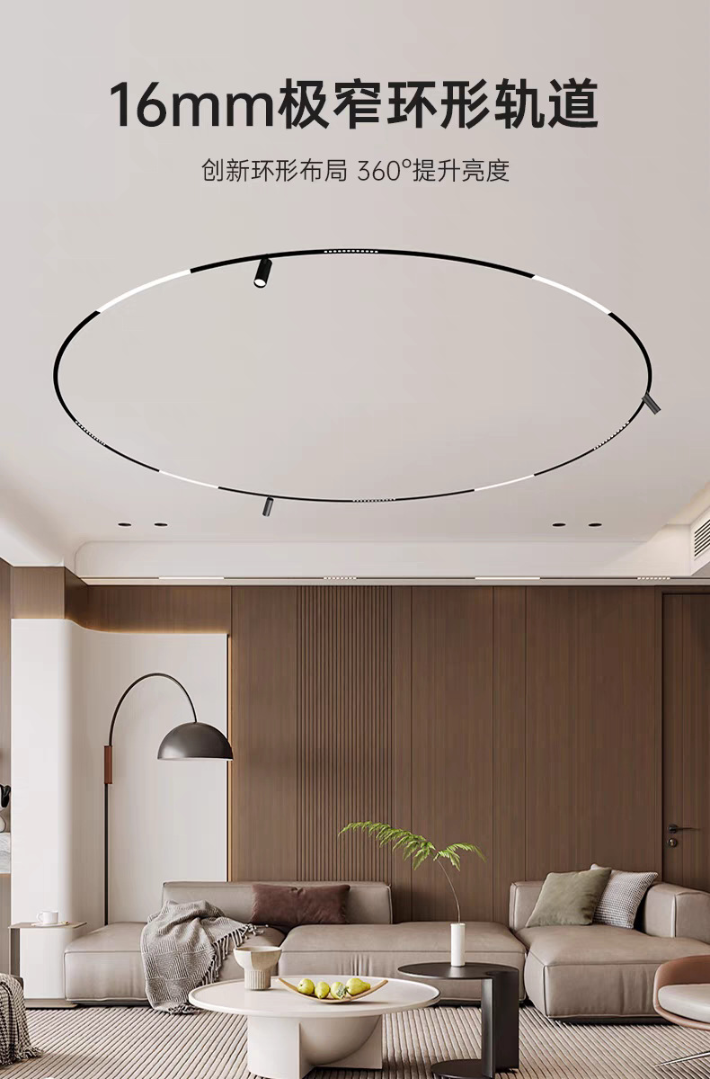 Luz de pista de atracción magnética anular, luz de reflector de riel redondo inteligente incrustada sin borde de montaje oculto para sala de estar dormitorio comedor