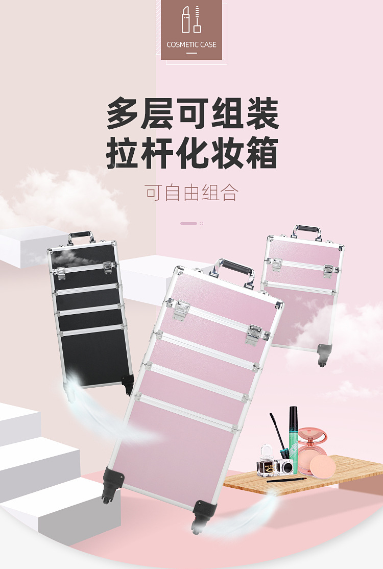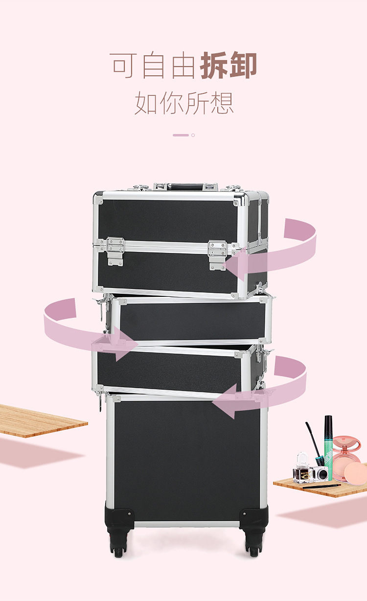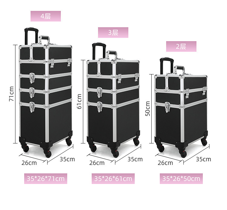 Caja de herramientas de manicura varilla de tracción de gran capacidad talón de maquillaje bordado belleza multicapa de almacenamiento profesional caja de maquillaje cepillo de maquillaje portátil