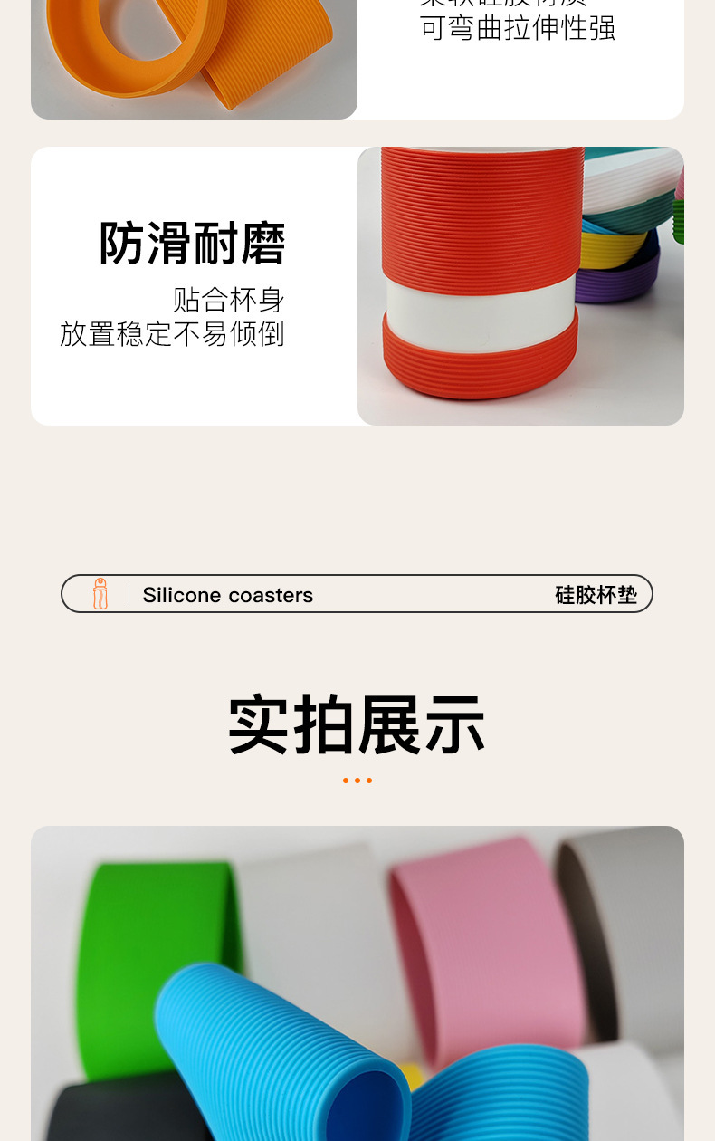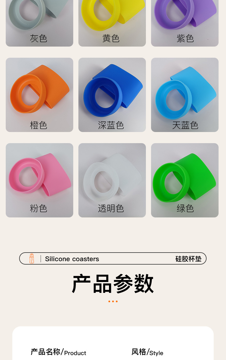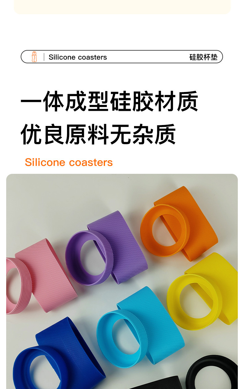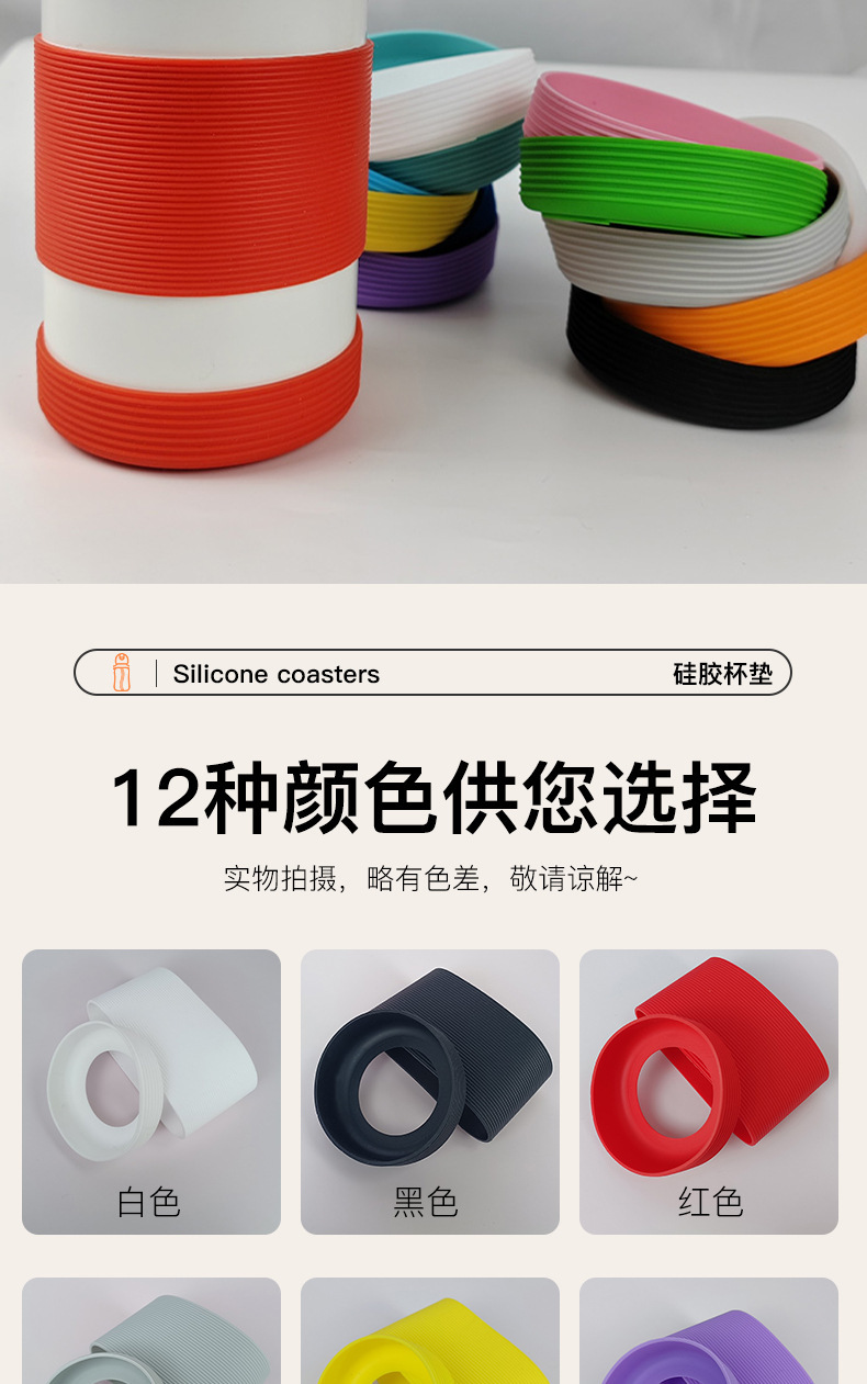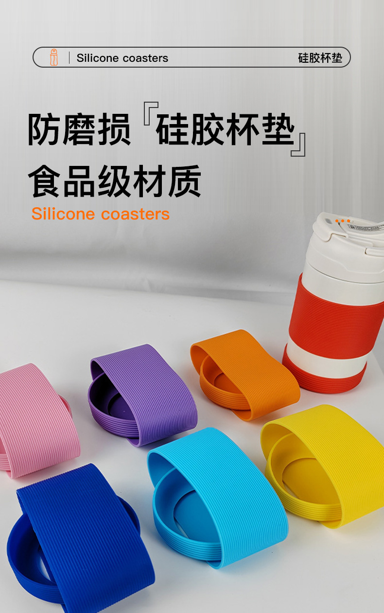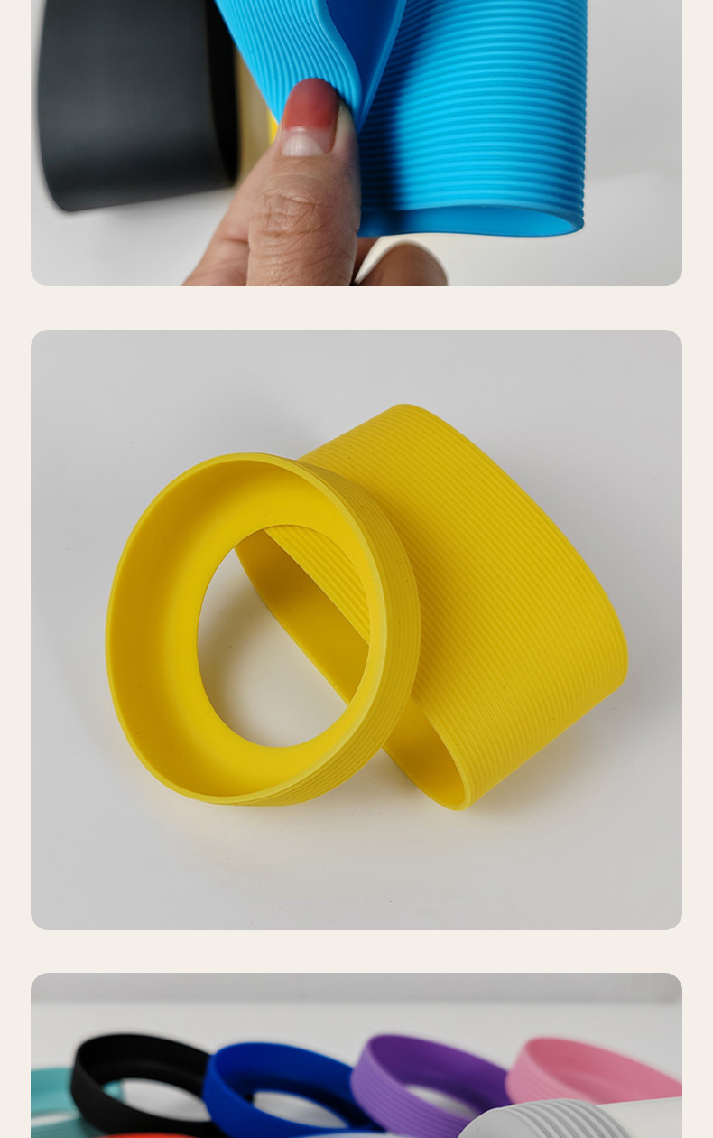 Fábrica de venta directa transfronteriza silicona gruesa antideslizante taza térmica antideslizante taza redonda de vidrio a rayas cubierta de taza