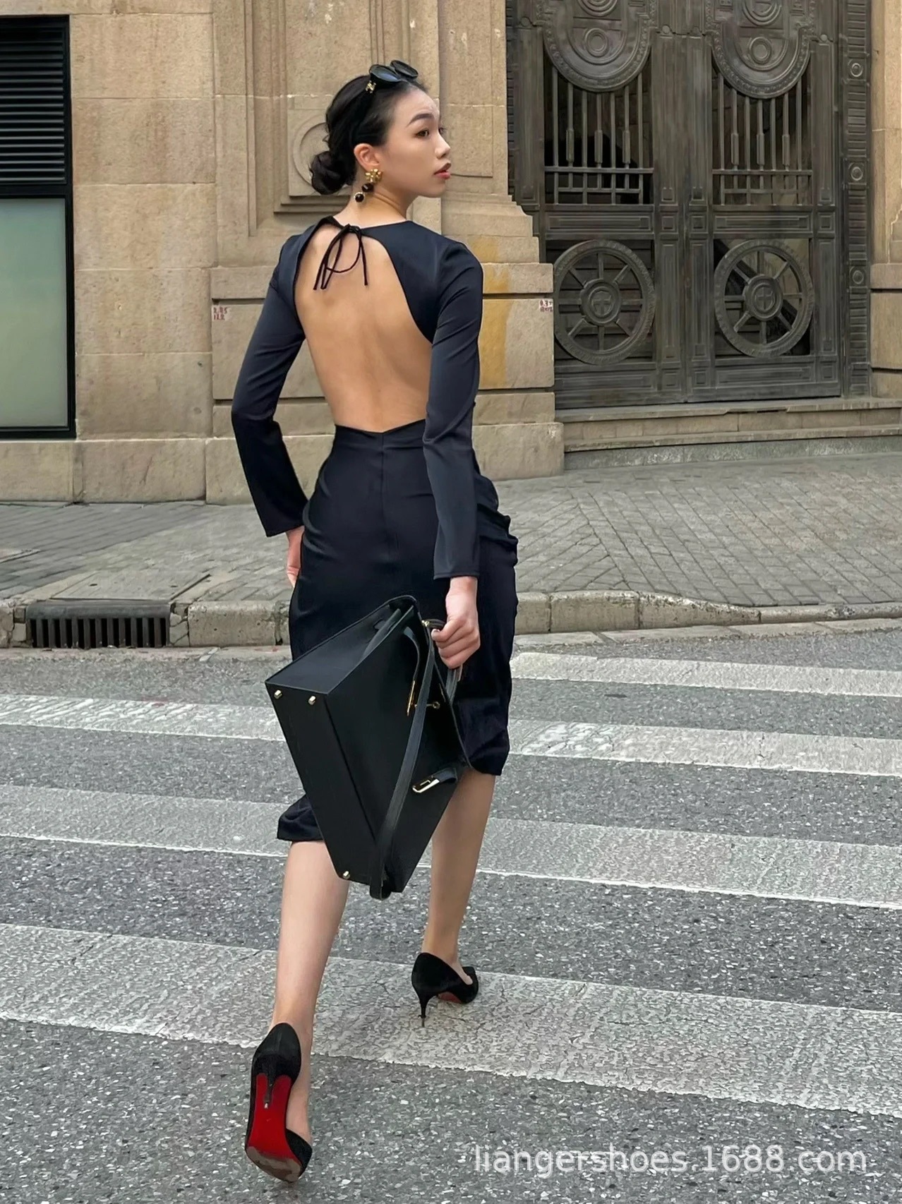 Rojo fondo lateral vacío tacones altos zapatos de mujer 2024 tacones de color desnudo puntuales de cuero esmalte temperamento zapatos de mujer nueva moda versátil