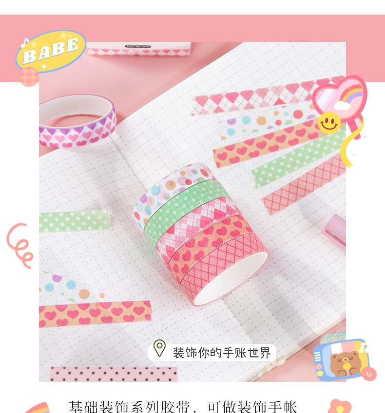 Y cinta de papel 5 envuelto en el viento ins pequeña cinta fresca de la cuenta manual de bricolaje hecha a mano material básico pegatinas decorativas