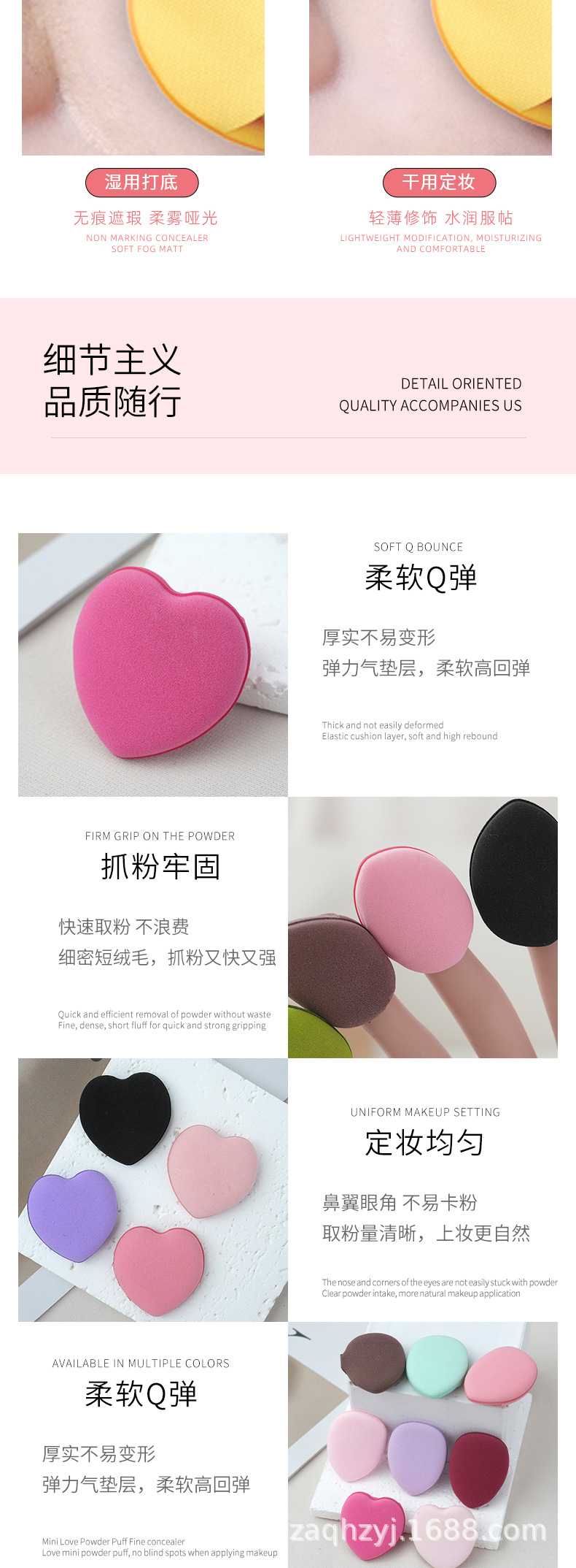 Mini aplicador de maquillaje en forma de corazón, sin látex, compacto, herramienta de retoque de maquillaje, no absorbente, desechable, transfronterizo.