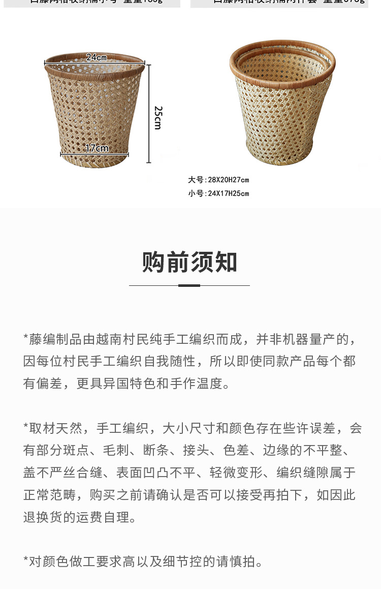 | Colores | Cubo de almacenamiento de malla de ratán blanco pequeño,Cubo de almacenamiento de malla de ratán blanco grande,Juego de 2 piezas de barril de almacenamiento de rejilla de ratán blanco,Cesta de ratán blanca de longitud cuadrada portátil 35*24*15cm,Cesta de ratán blanca de longitud cuadrada portátil 40*29*18cm,Cesta de ratán blanca, longitud cuadrada portátil 46*31*20cm,Cesta de ratán blanca de longitud cuadrada portátil 25*25*25cm,Cesta de ratán blanca de longitud cuadrada portátil 30*30*30cm |