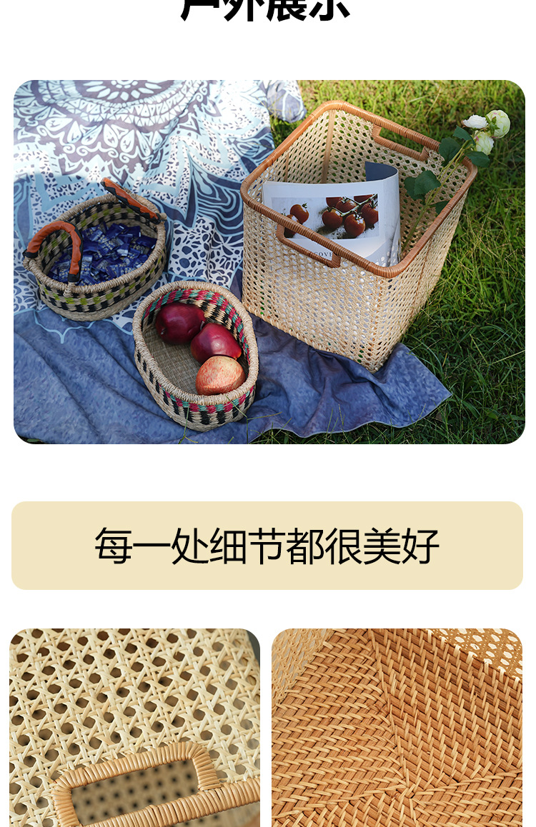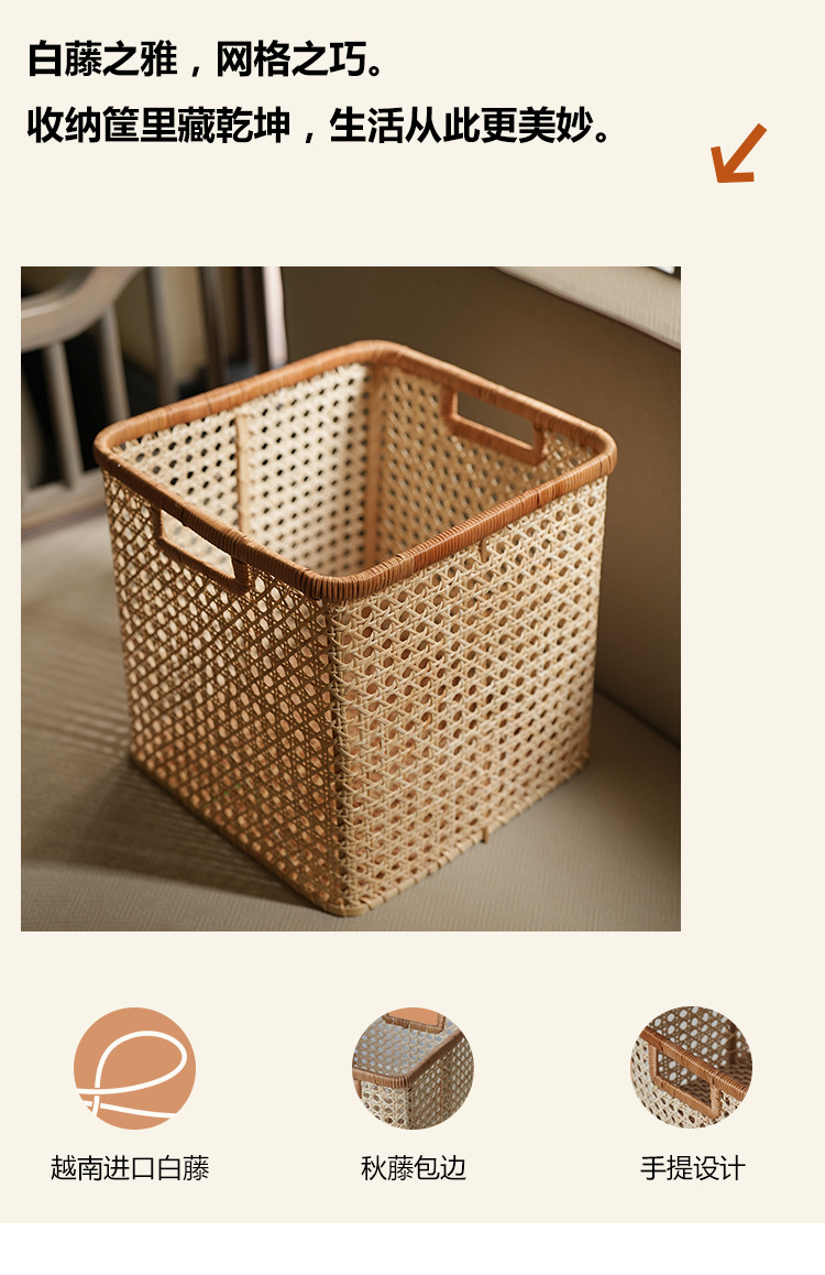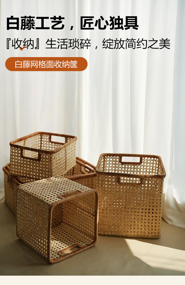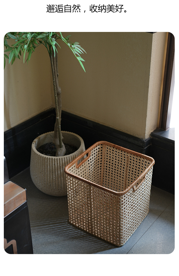Cesta de almacenamiento de ratán Cesta de almacenamiento tejida a mano Marco grande Libro de CD de lujo ligero nórdico Almacenamiento en el hogar Artículos para el hogar