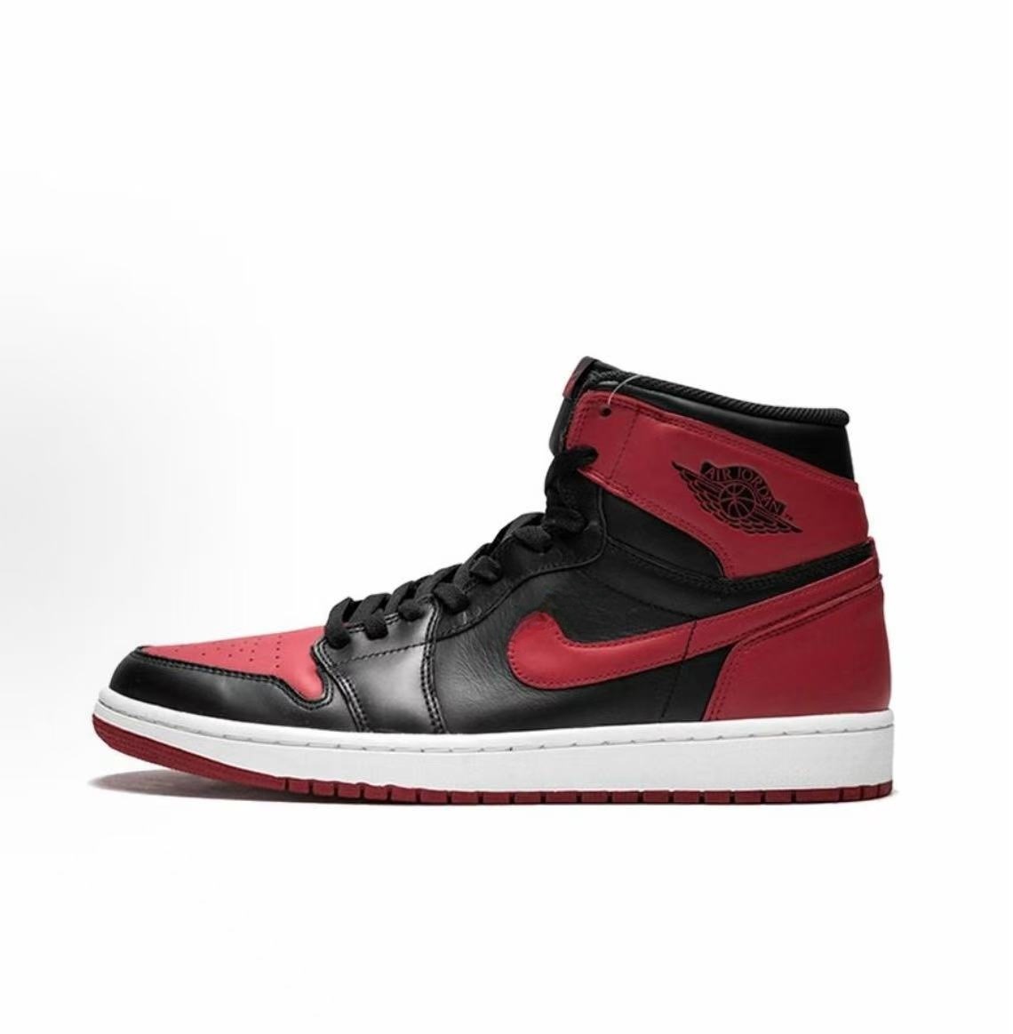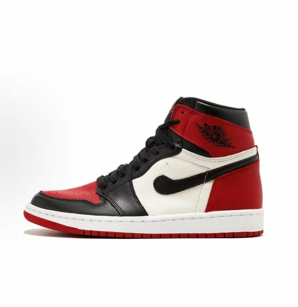 Suministro exclusivo transfronterizo de Putian de zapatillas de baloncesto AJ1 de caña media-alta en color marrón ceniza, negro y puntera roja, calzado deportivo unisex.