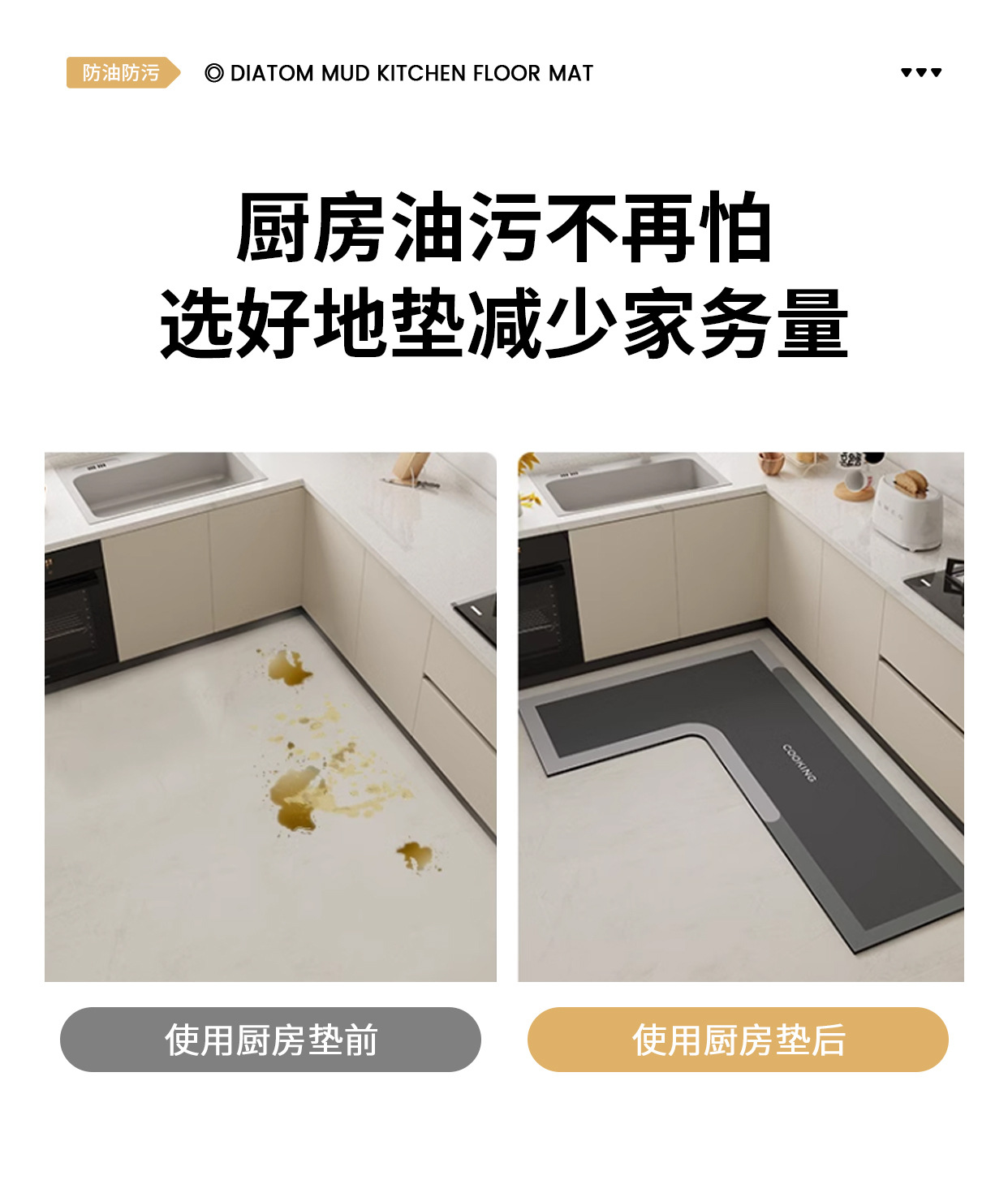 Cocina alfombra de suelo absorción de agua a prueba de aceite lujoso ligero de alta calidad sin lavado limpieza de barro de diatomeas alfombra antideslizante de la puerta del hogar