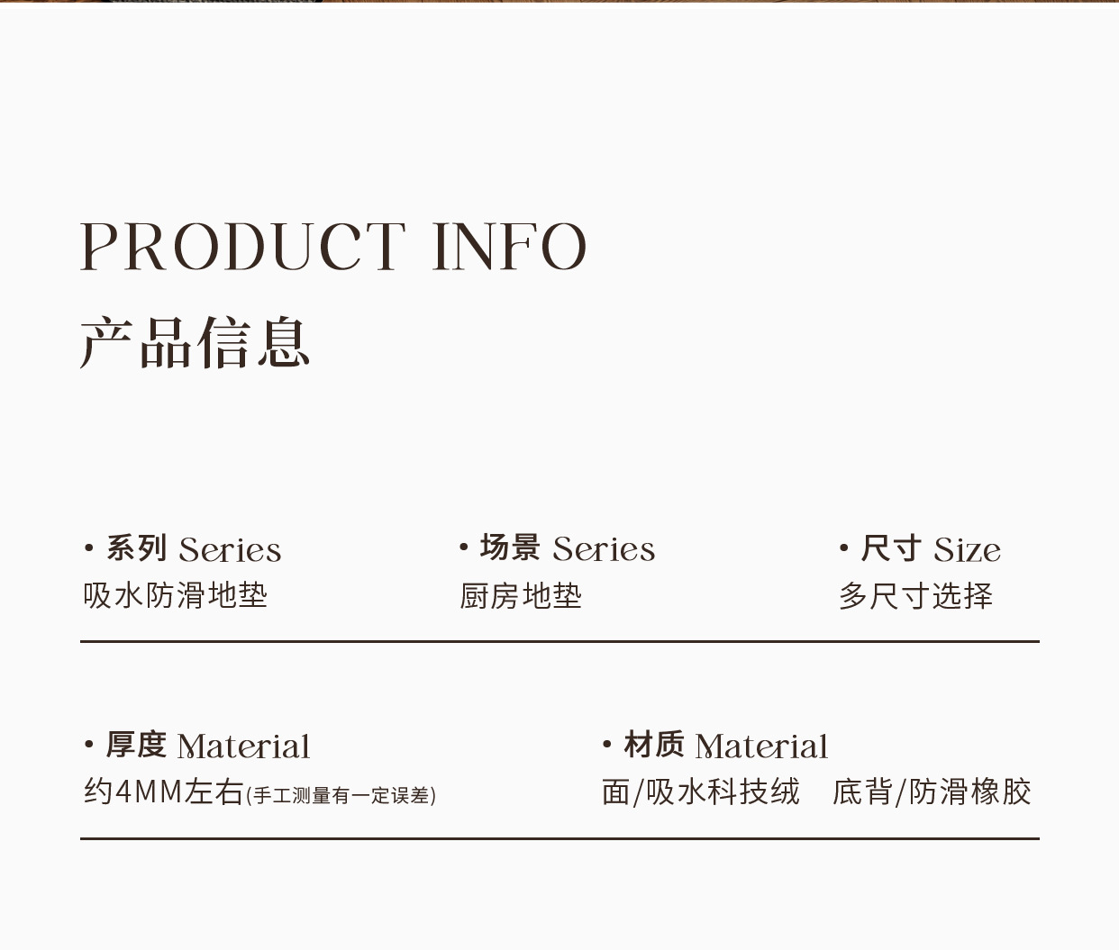 | Tamaño | 40x90cm de barro de algas super absorción de agua, 40x120cm [espesor dorado], 40X150cm [resbalador y anticaídas], 40x180cm [limpieza con una limpieza], 50X80cm [cocina y baño universal], 50X120cm [superficie de tela tecnológica], 50x150cm [suave para la piel], 50x180cm [resistente a la suciedad y fácil de cuidar], 50X200cm [protección fuerte para alargar], 60X90cm de barro de algas conveniente para el suelo, 60x120cm [durable], 60X150CM [cortar a voluntad], 60X180CM [seguridad 0A], 60X200cm [fácil lavado], 80X160cm [ajuste al suelo], 80X200cm [cocina de balcón disponible], 100x120cm [buen efecto a prueba de choques], 100X150CM [se siente completamente avanzado], 100X180CM [multi-escena multi-propósito], 100x200cm [balcón de cocina lleno], tamaño exclusivo personalizado |