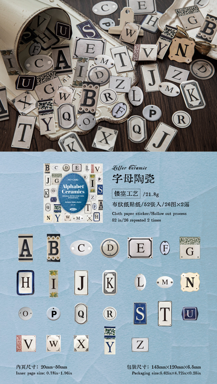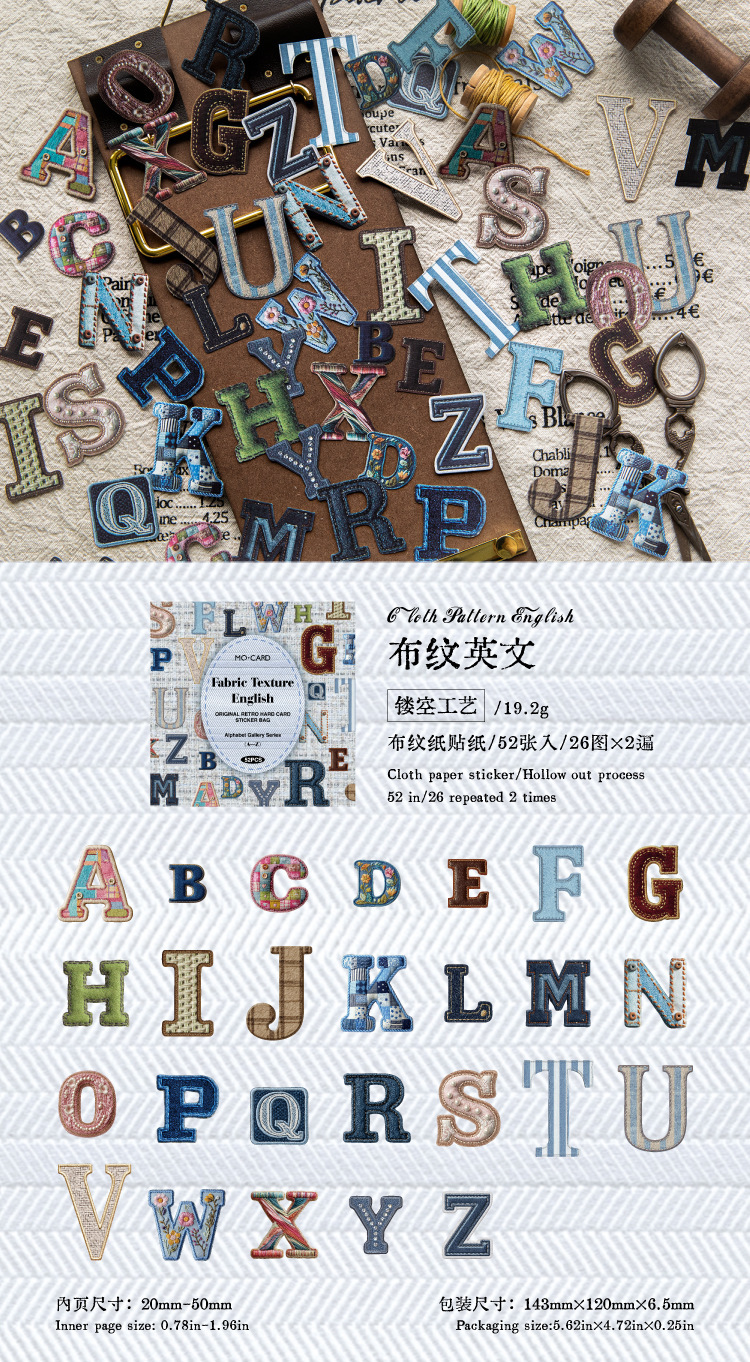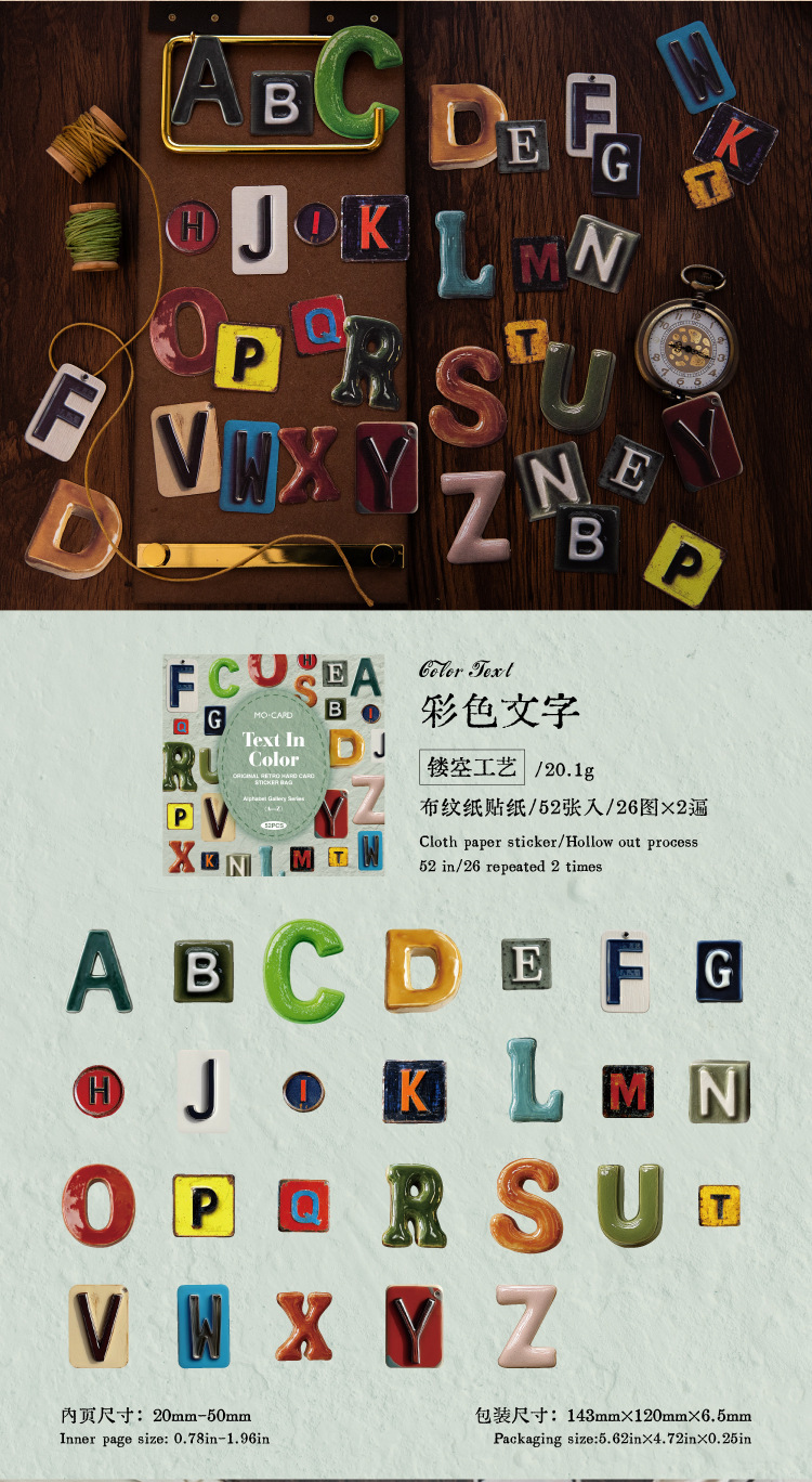 | Color | Inglés de tela, letras básicas, láminas de hierro de letras, texto de color, cerámica de letras, madera inglesa |