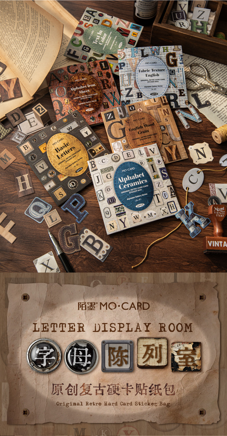 Mo tinta retro tarjeta dura cartelería cartelería serie de letras de exposición base de patrón salvaje mano de la tienda Gu Meidiy collage