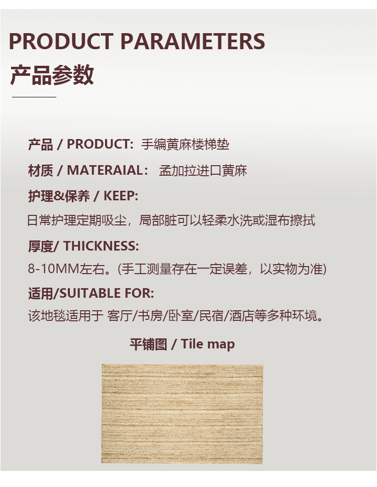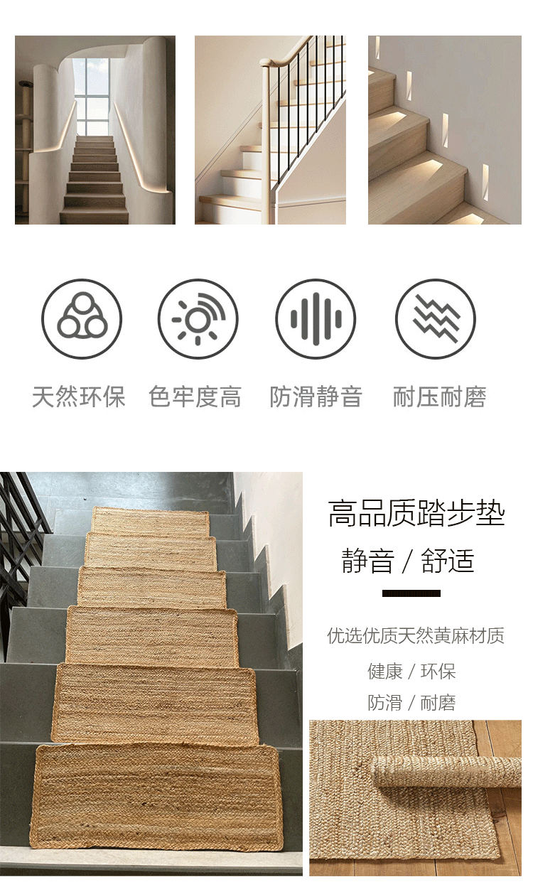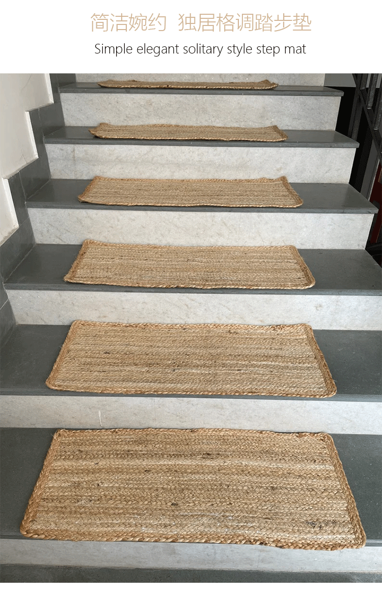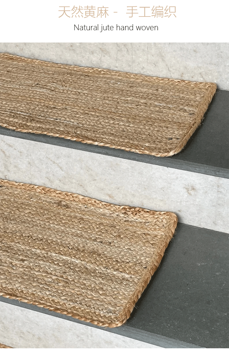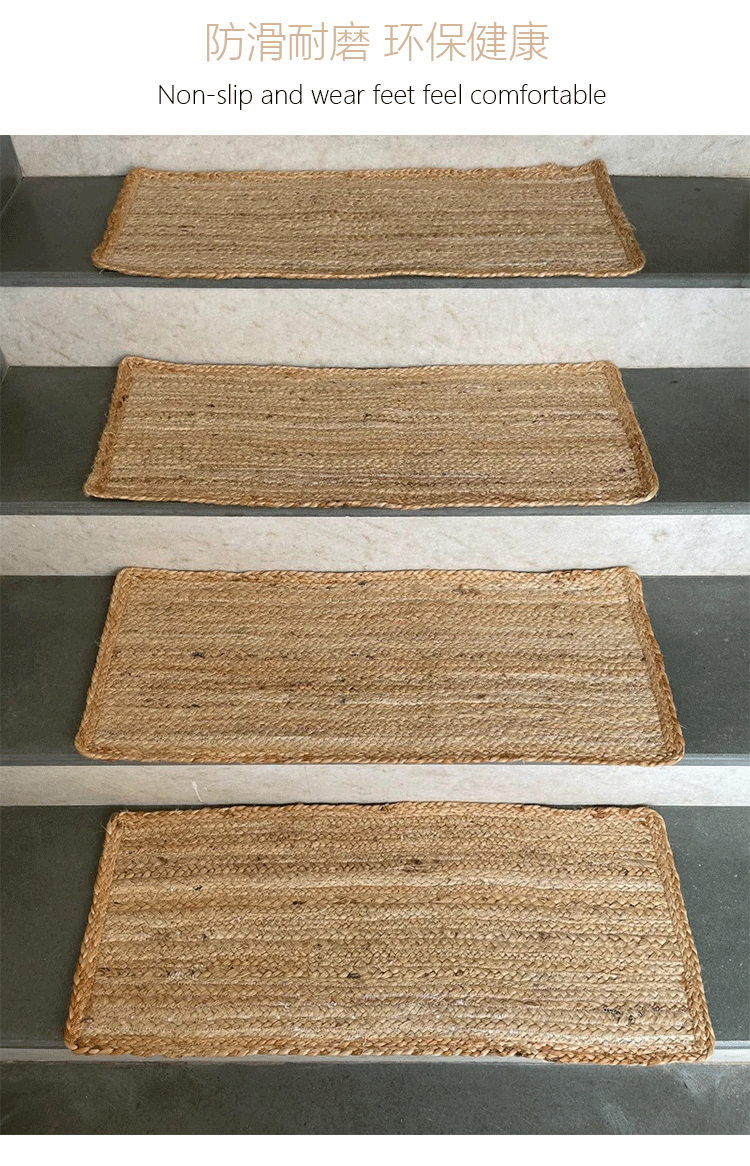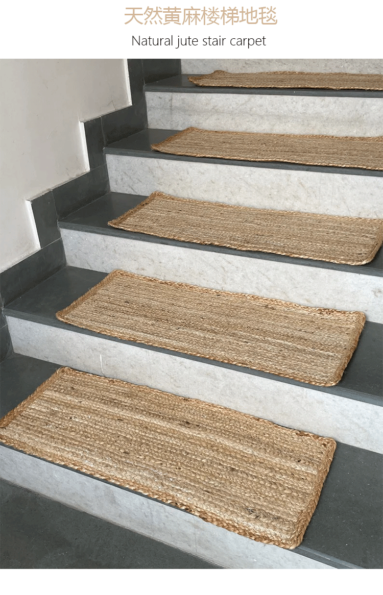 Alfombrilla de escalera tejida a mano de fibra de yute natural importada de Bangladesh Alfombrilla de escalera sin pegamento antideslizante y resistente al desgaste para el hogar