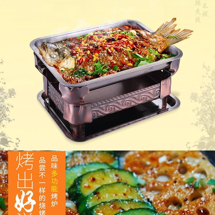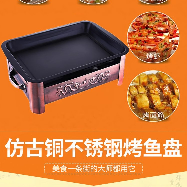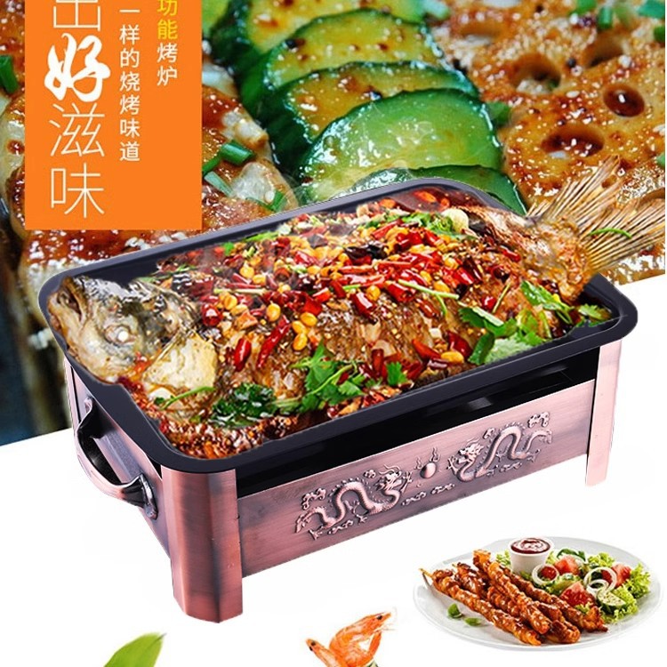 Horno de pescado a la parrilla antiadherente grueso comercial, horno de alcohol de carbón de acero inoxidable, horno de pescado a la parrilla Ssangyong, horno de carbón para hotel, plato de pescado a la parrilla