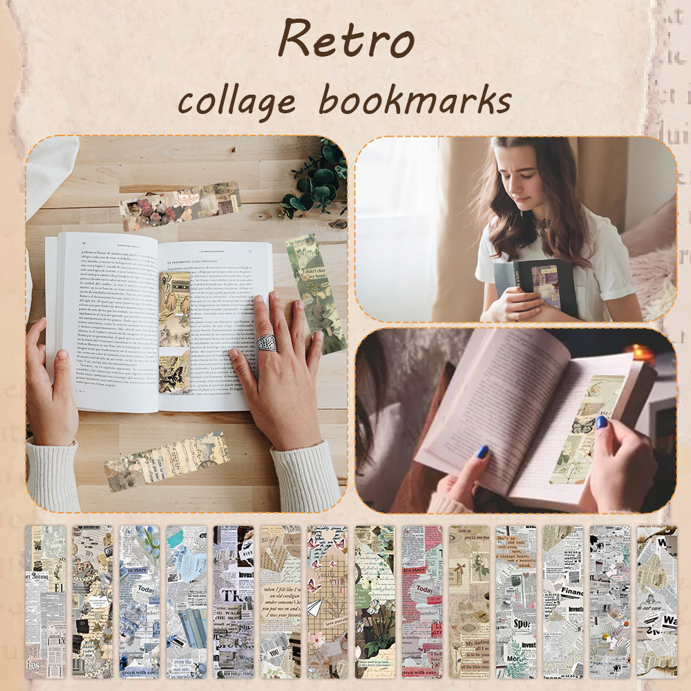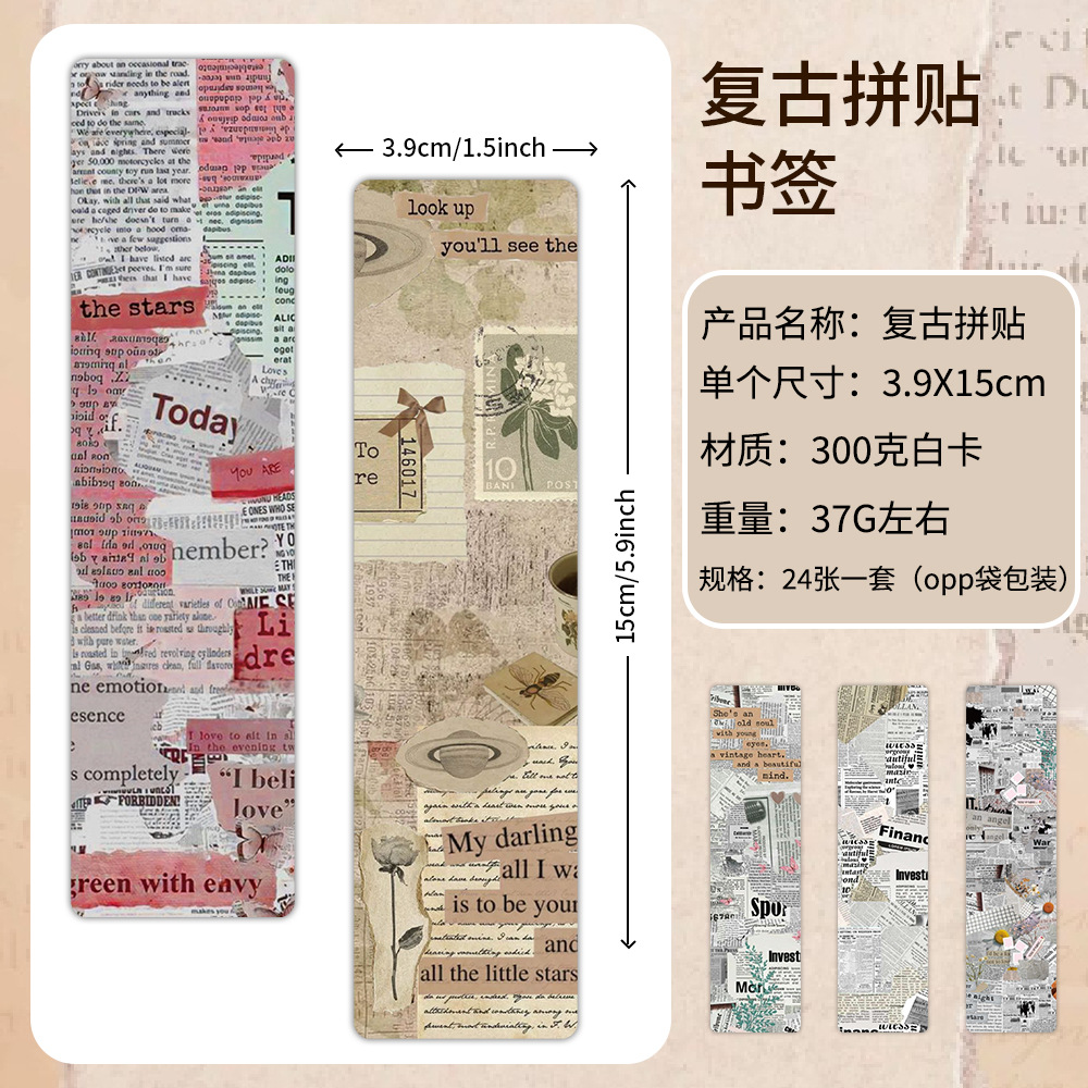 24 marcadores de papel de collage retro transfronterizo, novelas de estudiantes, libros de texto, tarjetas de decoración, libros de lectura, tarjetas pequeñas