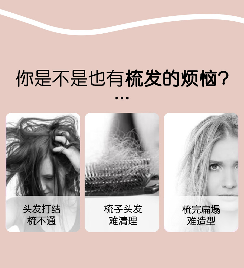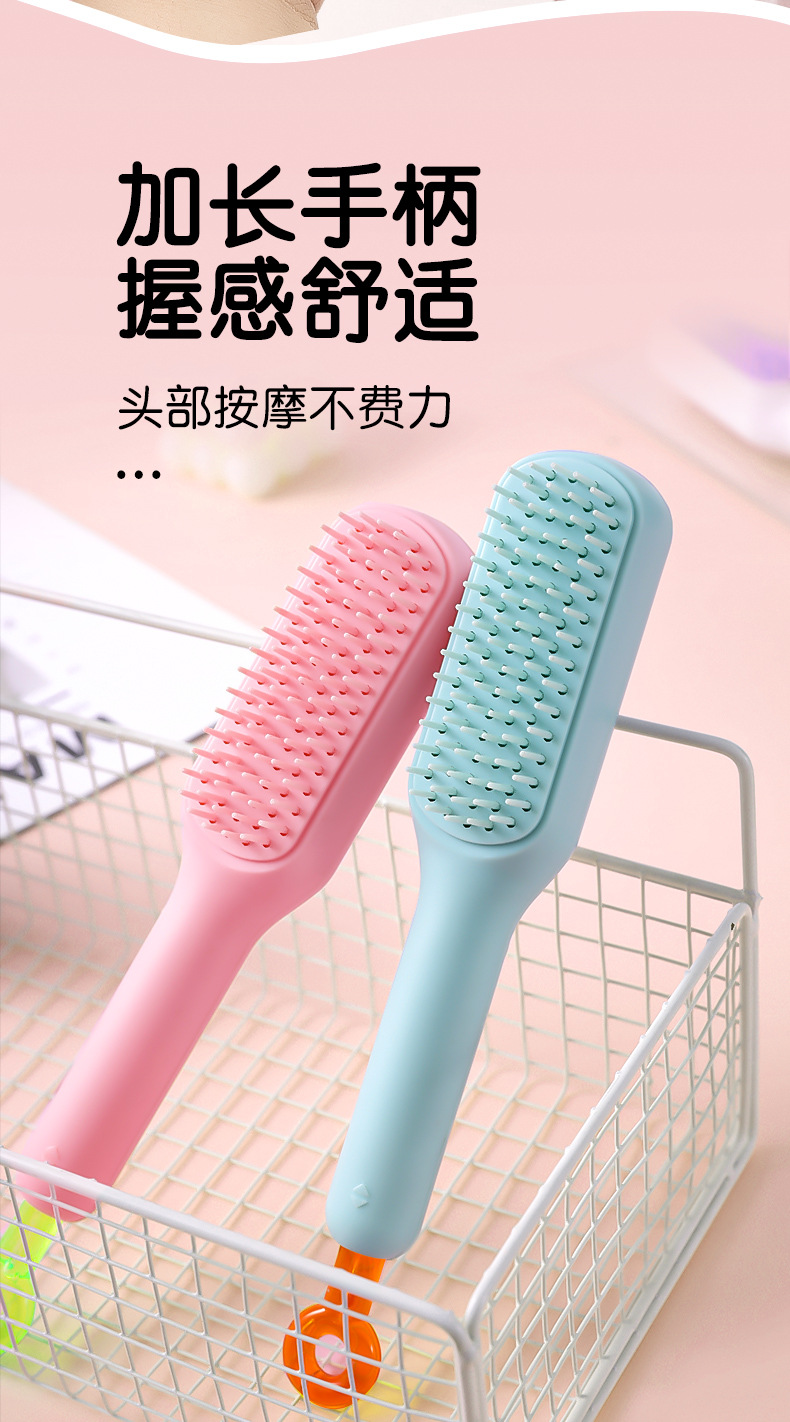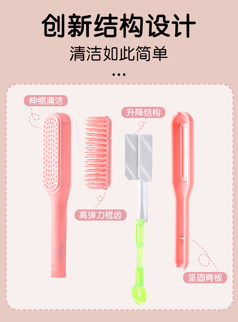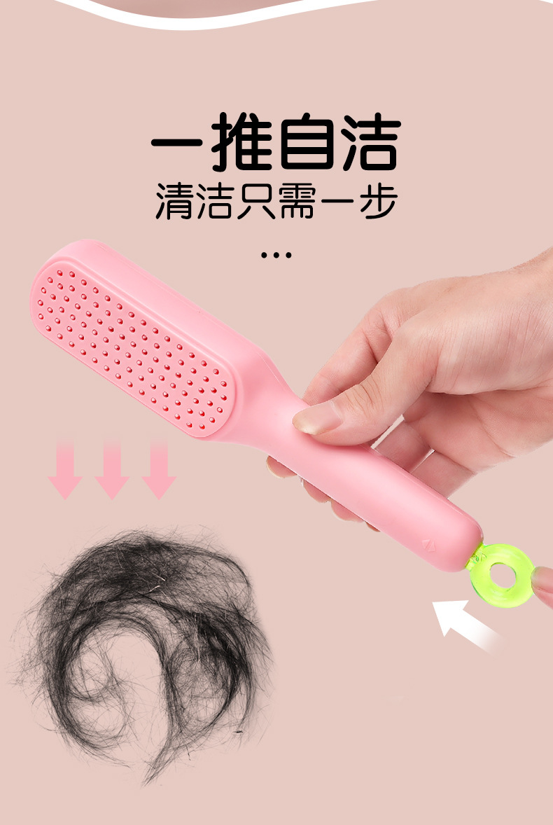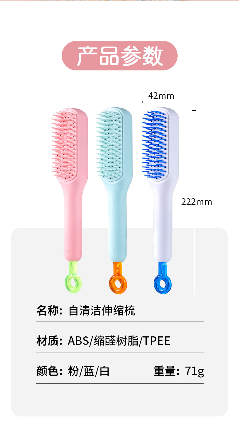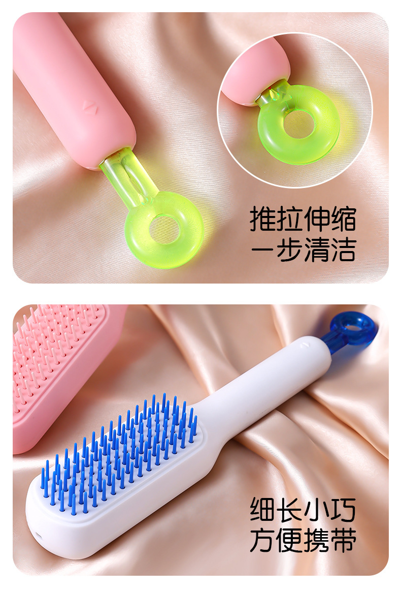 Peine de masaje con espejo, peine de limpieza automática telescópico y esponjoso con una tecla, no daña el cabello, peine de bolsa de aire mejorado antiestático