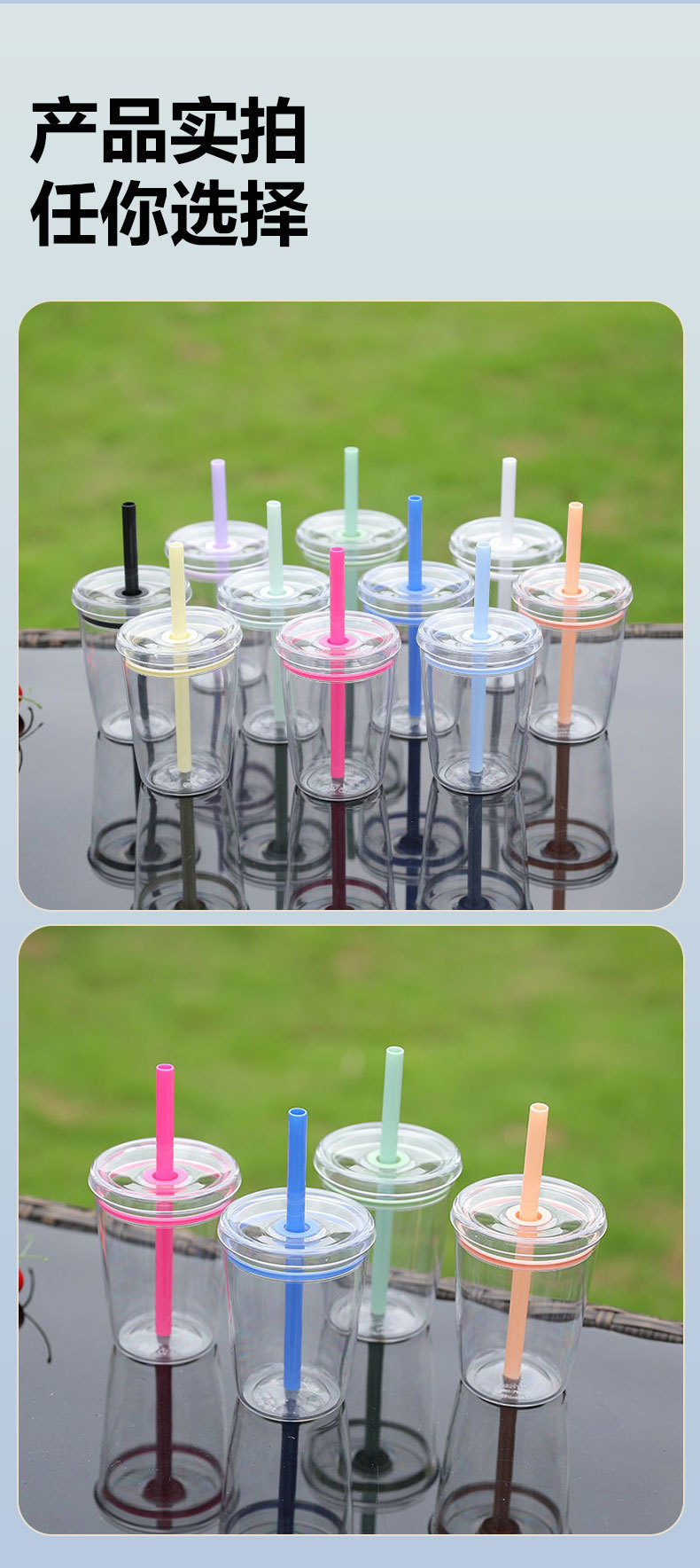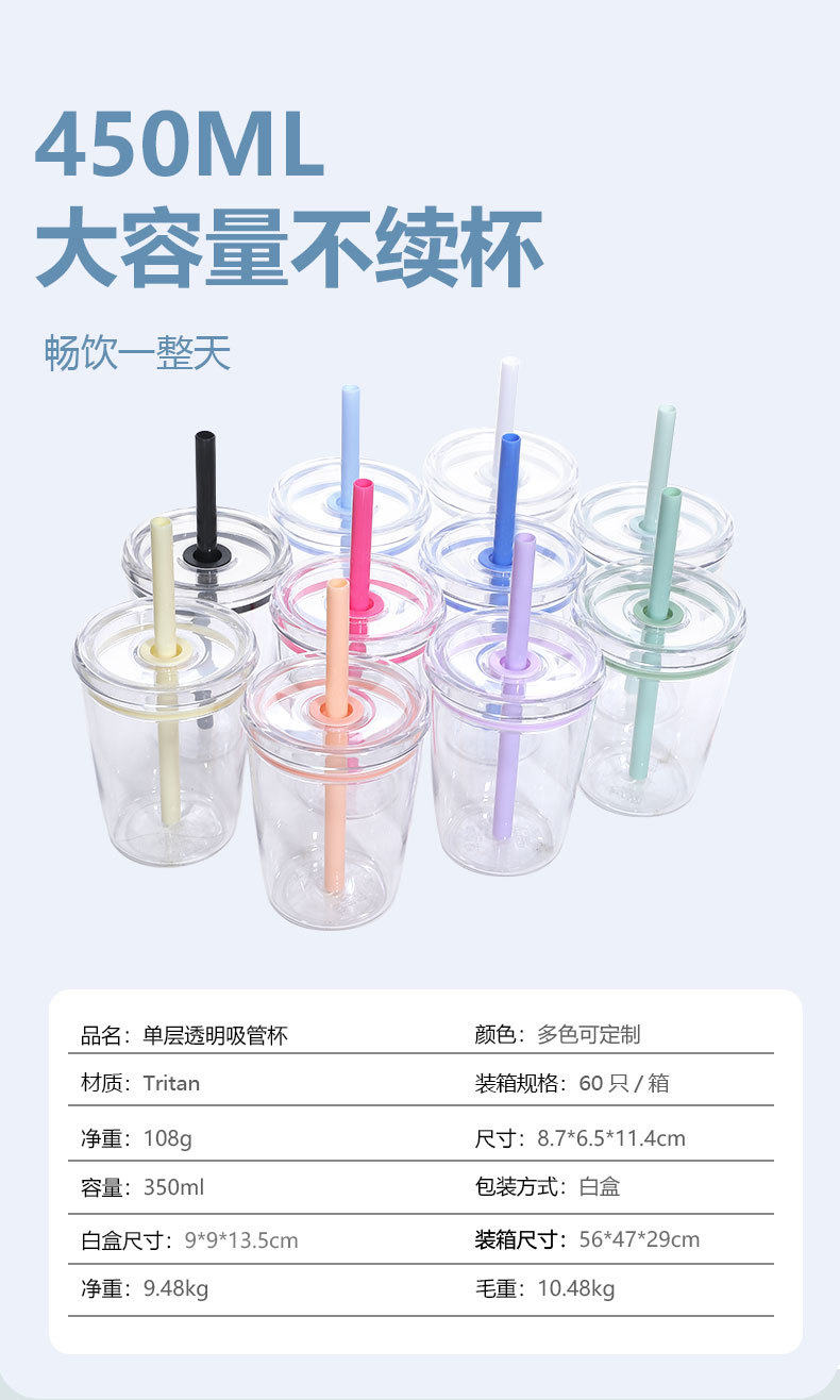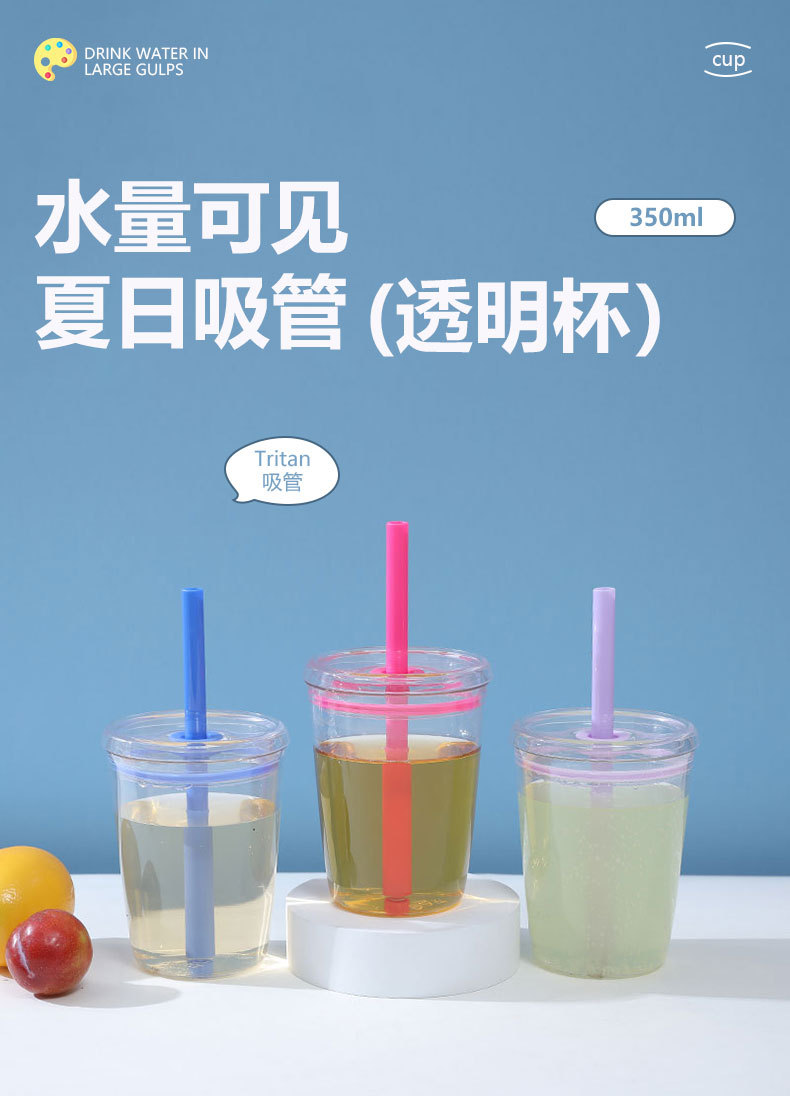 350ml mini taza de plástico transparente tritan taza de paja de color rojo para chicas lindas tazas de agua