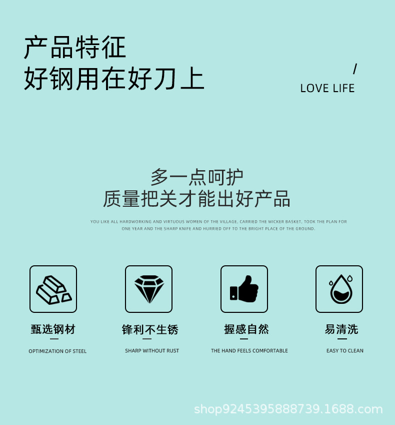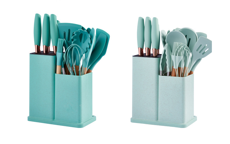 Kit de cuchillos de cocina de silicona resistente al calor cuchillos de cocina mango de madera cuchillo de cocina adesivo de silicona blanco rosa regalo de San Valentín