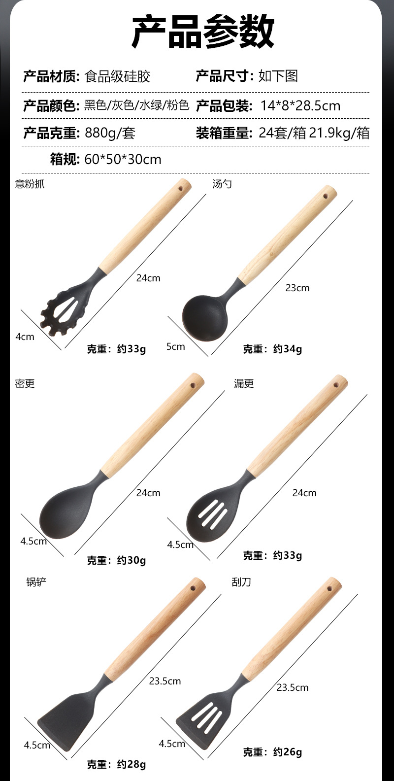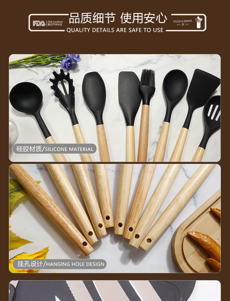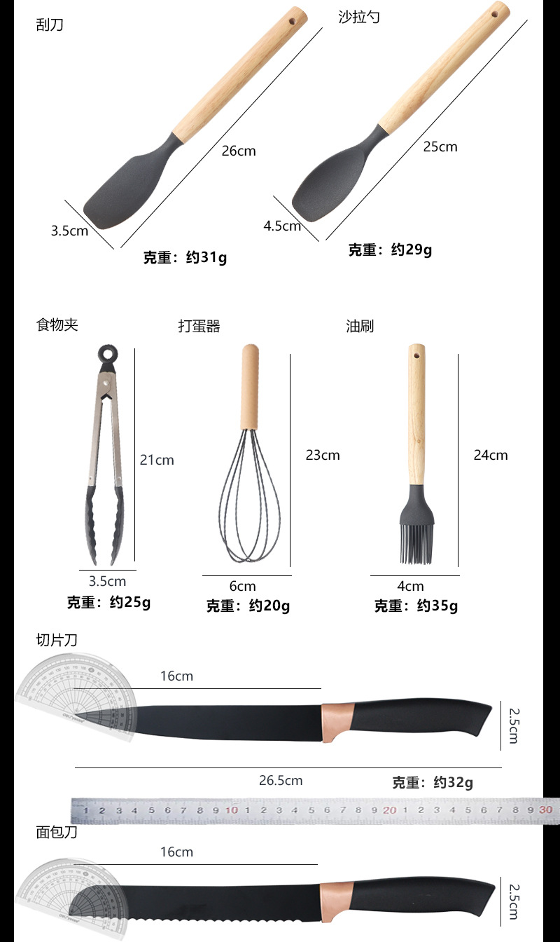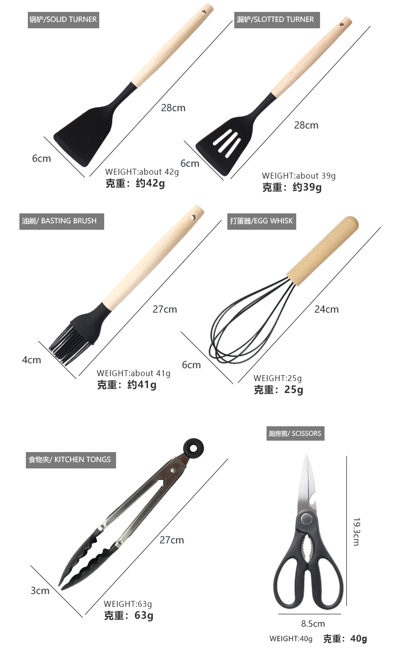 Pala de silicona, cuchara de sopa, juego de 19 piezas, sartén antiadherente, pala de silicona, cocina de silicona doméstica de grado alimenticio, juego de cuchillos al por mayor