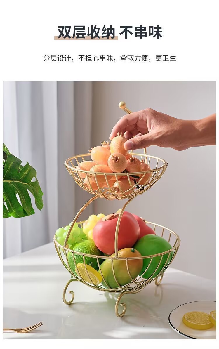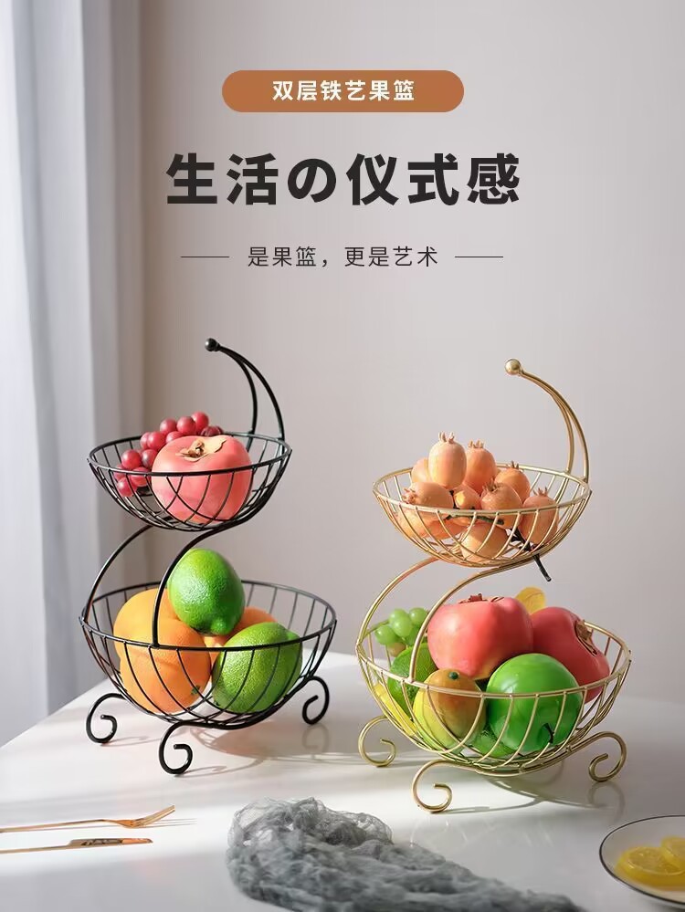 | Colores | Cesta de frutas de carroza de doble capa dorada con caja interior,Cesta de frutas de carroza de doble capa negra con caja interior |
