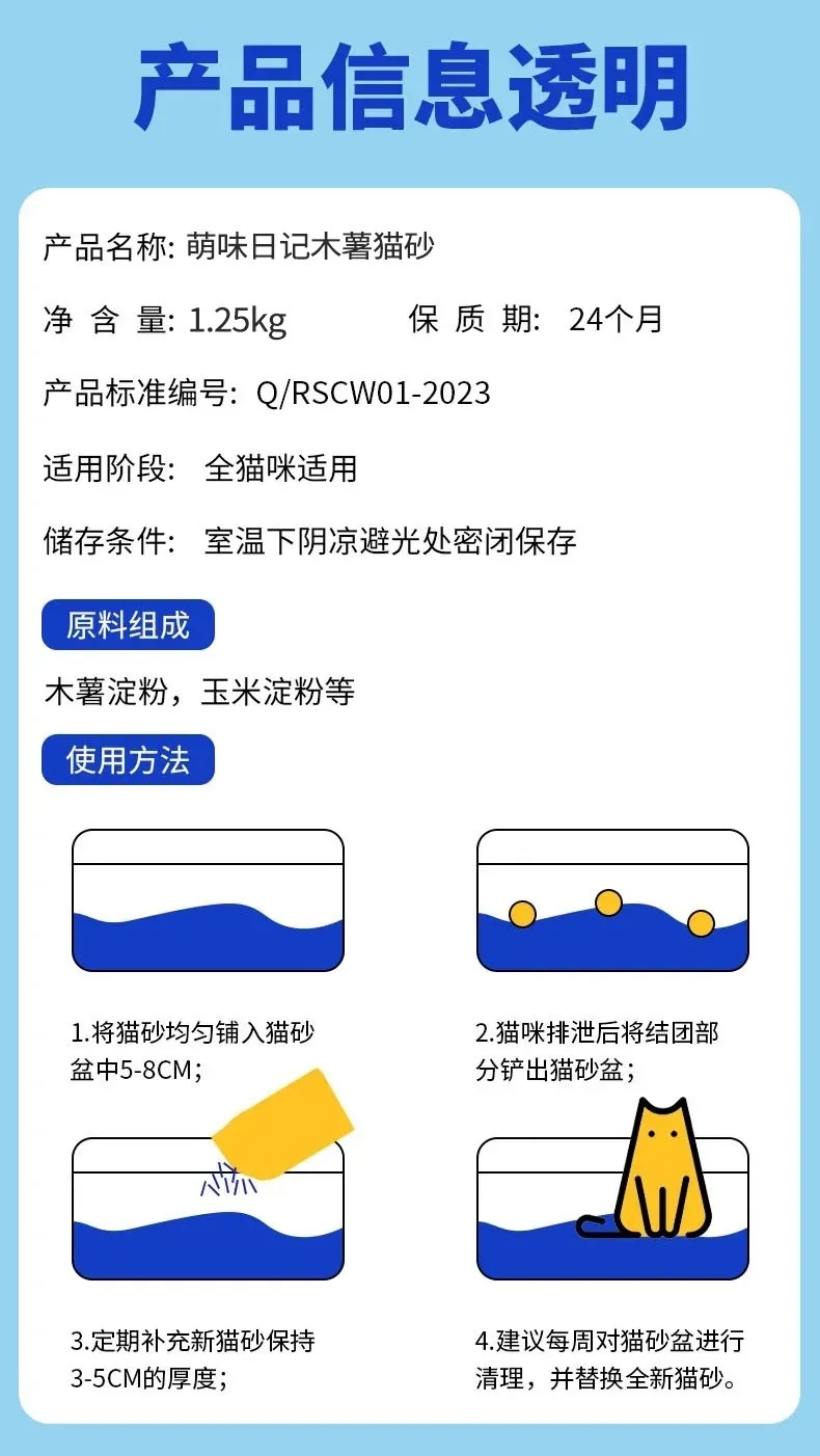 | Especificaciones | Diario de sabor dulce de plantas naturales de yuca arena para gatos 1.25kg / bolsa |