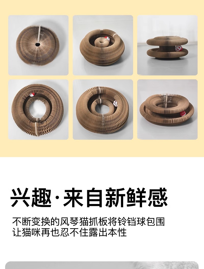 Órgano transfronterizo de venta caliente para gatos agarrar tablero para gatos juguetes con campana para gatos garras de molienda para gatos escalar estante de papel ondulado embalaje de cinta de succión