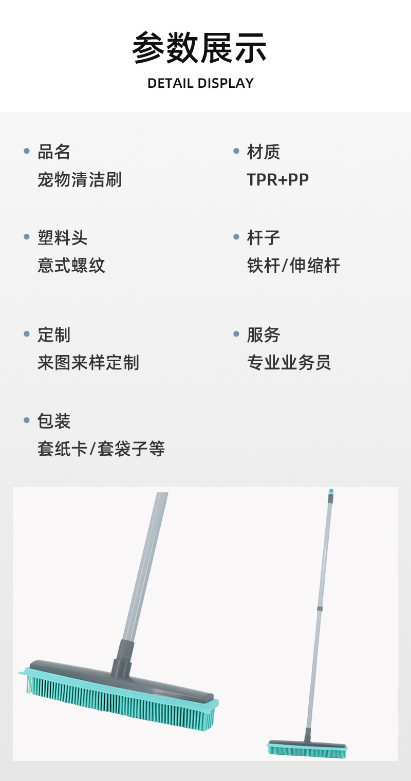 Cepillo de goma telescópico TPR para eliminar pelo de mascotas, cepillo para alfombras, herramienta de limpieza de pelo, cepillo de goma suave para suelos, cepillo grande para eliminar pelo.