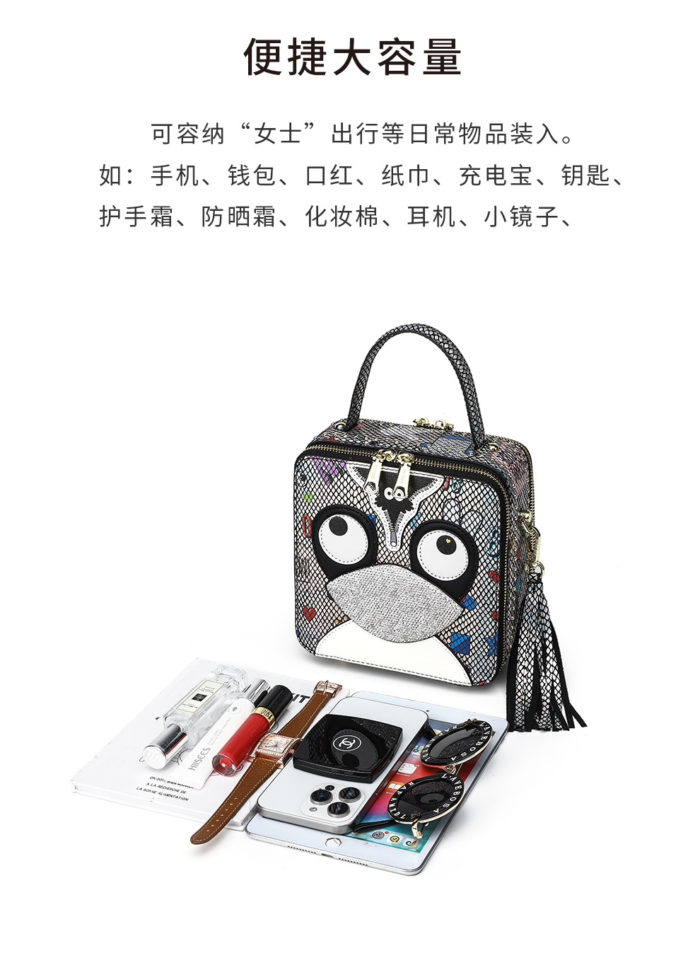 Estilo de mujer bolso cuadrado animal de moda cremallera bolso de perfume estampado con diamantes personales 2895 #